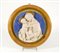 Tondo in maiolica bianca e oro su fondo azzurro, raffigurante "Madonna col...