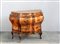 Comoncino di forma bombata lastronsato in noce e radica con due cassetti...