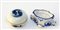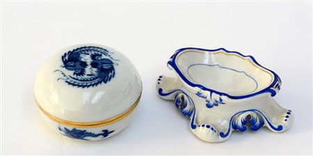 Manifattura di Meissen. Lotto composto da una scatoletta e uníalzatina in porcellana decorata nei toni del blu (difetti)