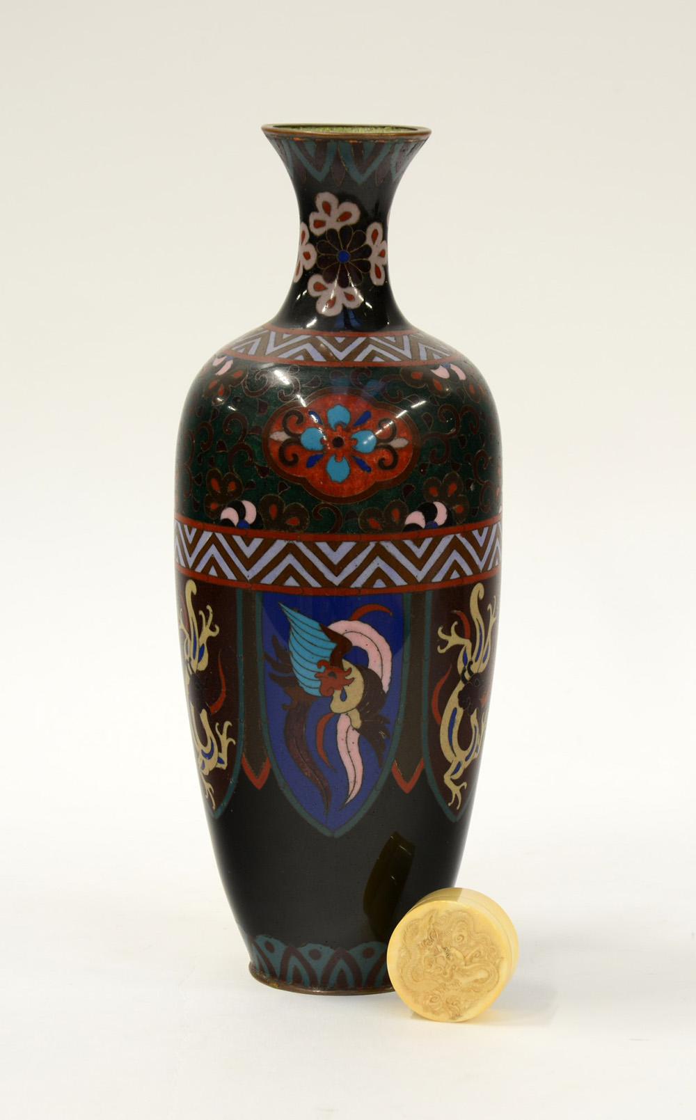 Manifatture orientali. Lotto composto da un vaso cloissonnÈ e una scatolina in avorio del sec. XIX (difetti)