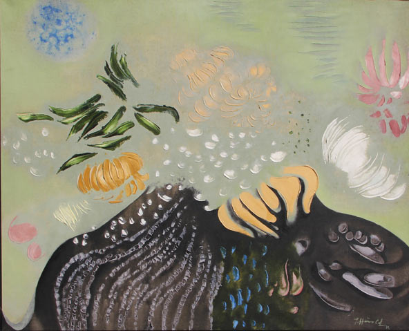 Jacques HEROLD 1910-1987 La nuit est liquide, 1972 olio su tela oil on canvas cm 65×81 Firma, data ‘J. Herold, 72’ (in basso a destra) Titolo, firma, data ‘La nuit est liquide, Herold, 1972’ (al retro) Signed, dated ‘J. Herold, 72’ (lower right) Titled, signed, dated ‘La nuit est liquide, Herold, 1972’ (on the reverse)