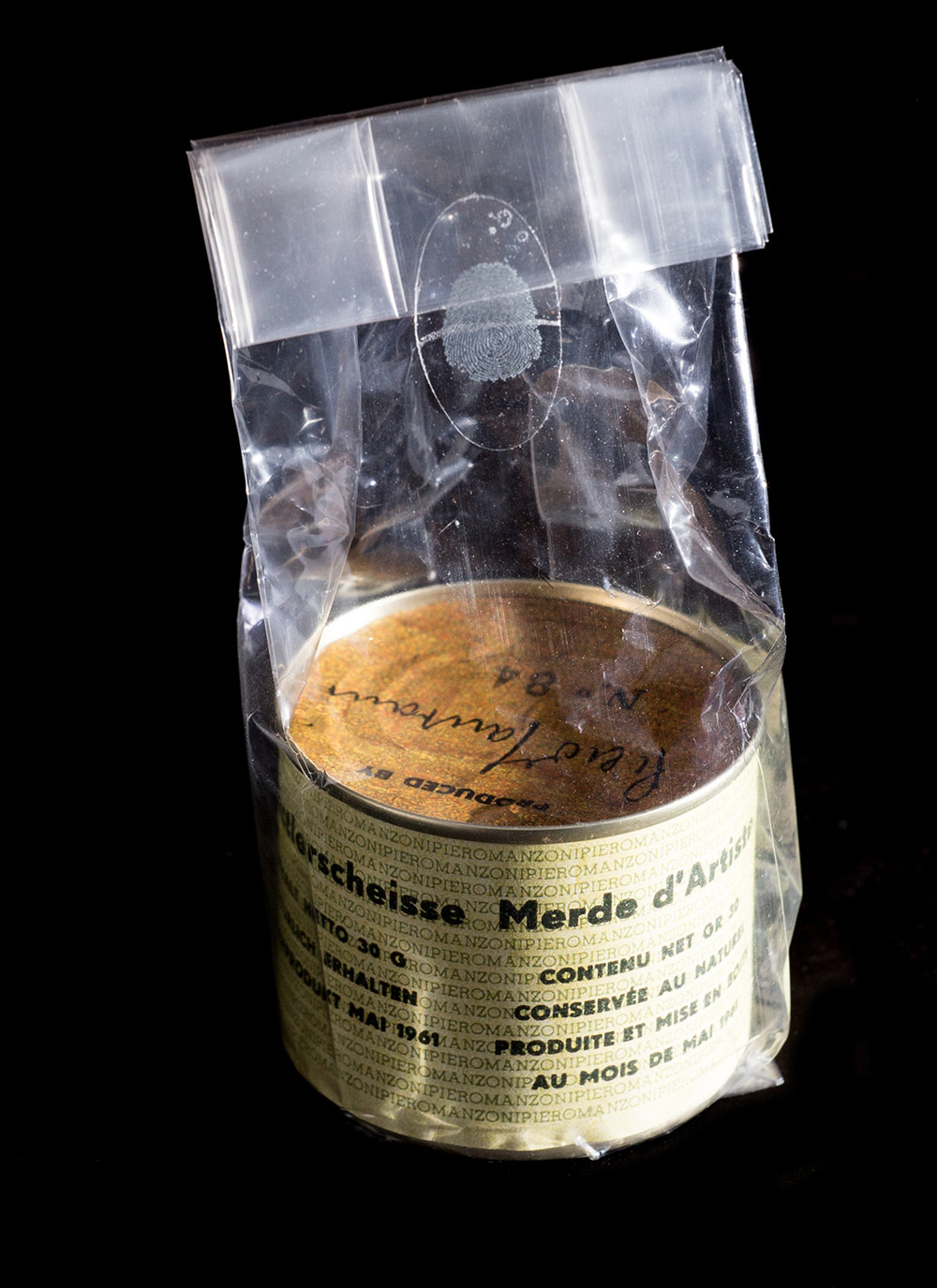 Firma stampata sul tappo, impronta digitale dell'artista serigrafata sul sacchetto