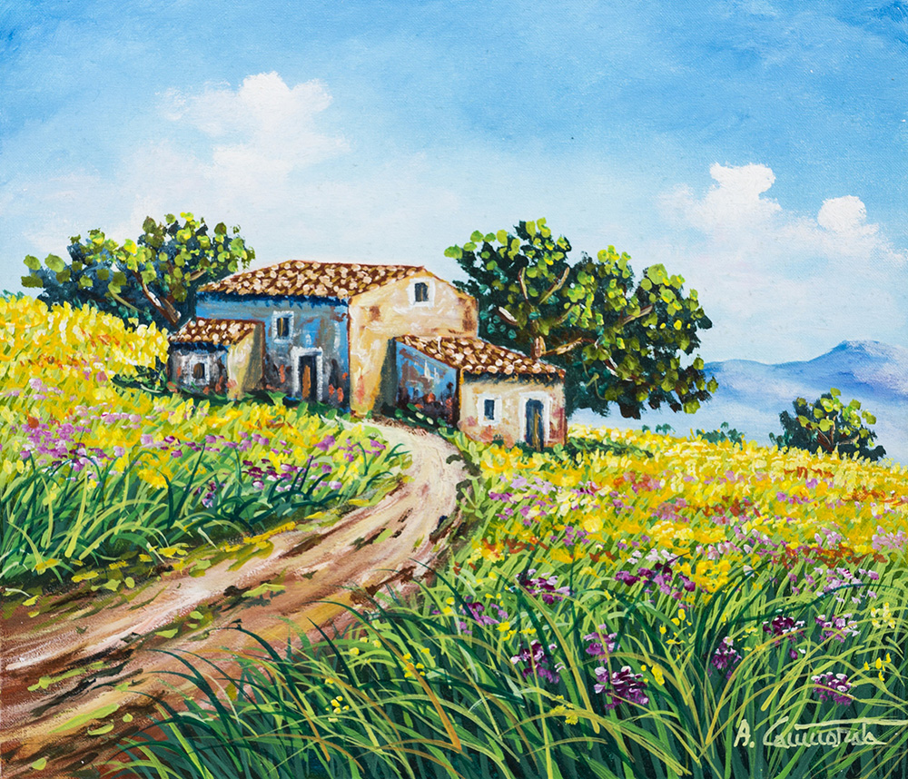 ANTONINO CAMMARATA (1962) Masseria nel Calatino, 2008 Olio su tela cm 30x35...