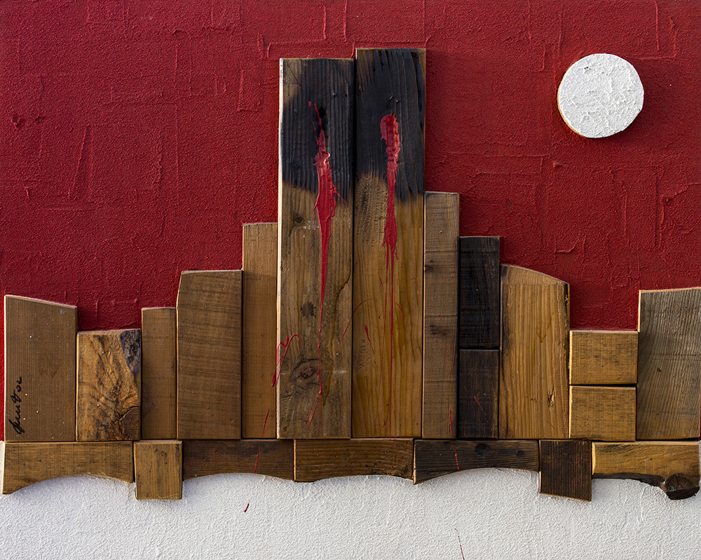 Etichetta dell'Artista al retro con dicitura "Opera pubblicata sul volume Doppie ferite - Double Wounds"