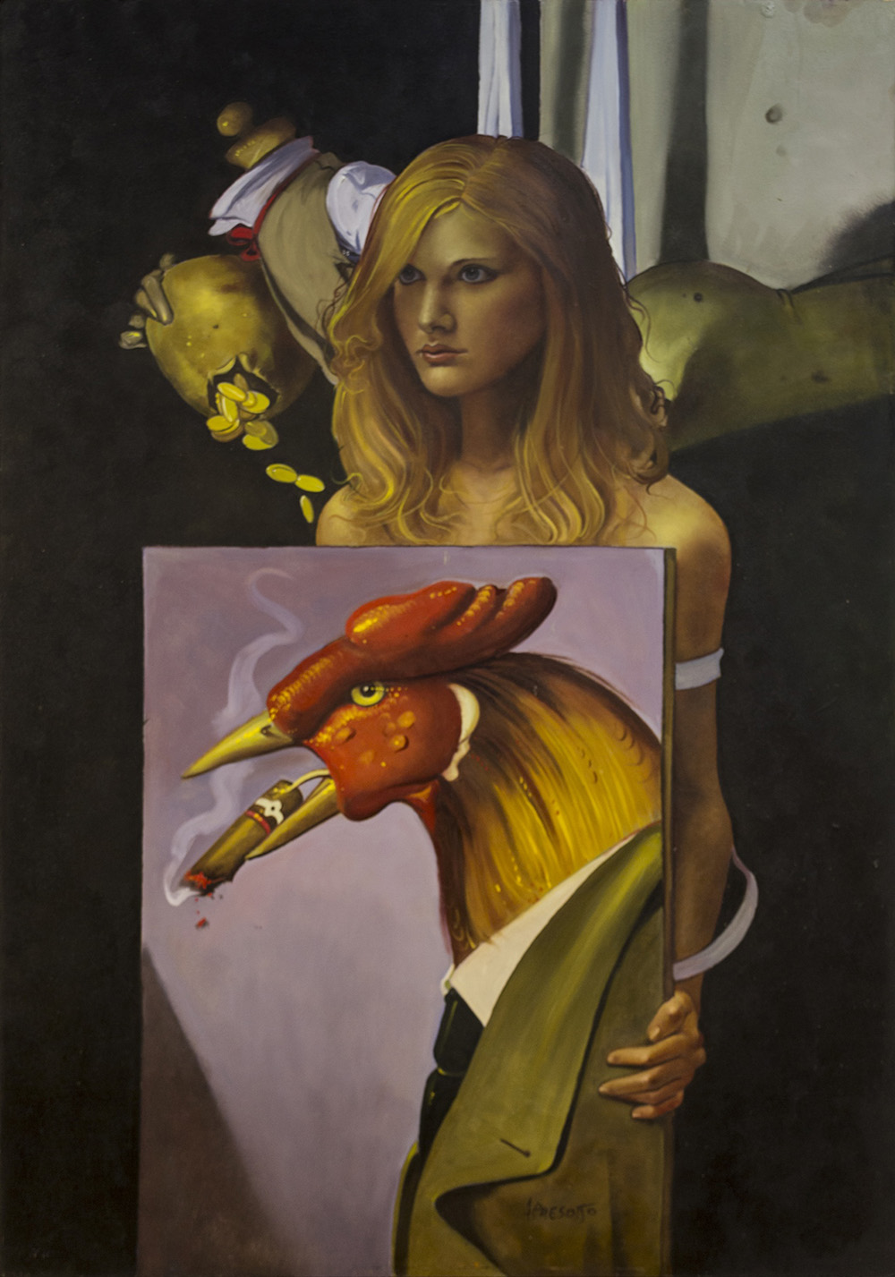 ALFIO PRESOTTO (1940) Il manichino misterioso Olio su tavola cm 100x70 Firma...