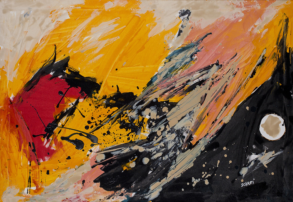 ATTILIO SCARFI (1931) Pensando a.. Tecnica mista e smalti su tela cm 70x100...
