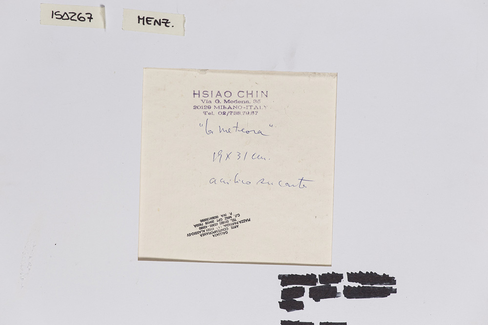 Titolo, misure, tecnica e timbro dello studio dell'Artista al retro
