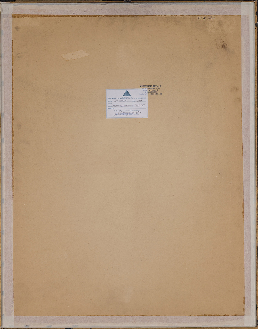 Etichetta e timbri della Galleria d'Arte Artestudio (MI)