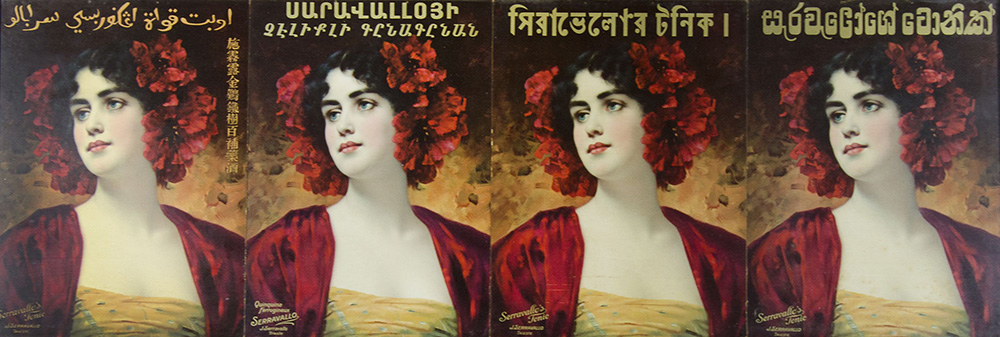Lotto di 4 manifesti della Serravallo Tonic in lingue diverse. Entro unica cornice di cm. 50x140.