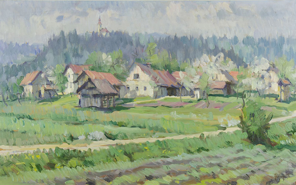 Tine Gorjup 1909-1991 "Paesaggio con case" cm. 50x80 - olio su tela Firmato b. a d.