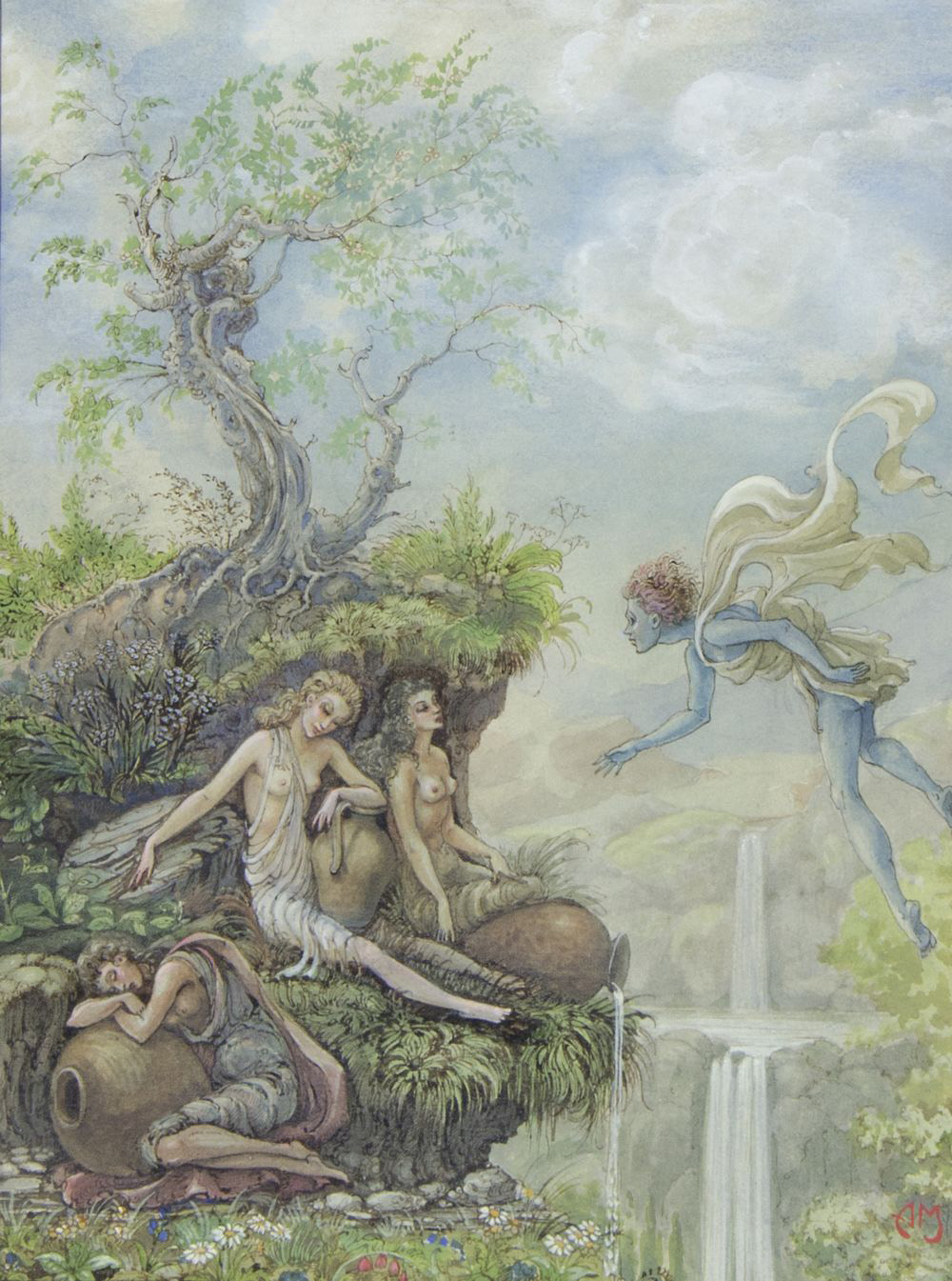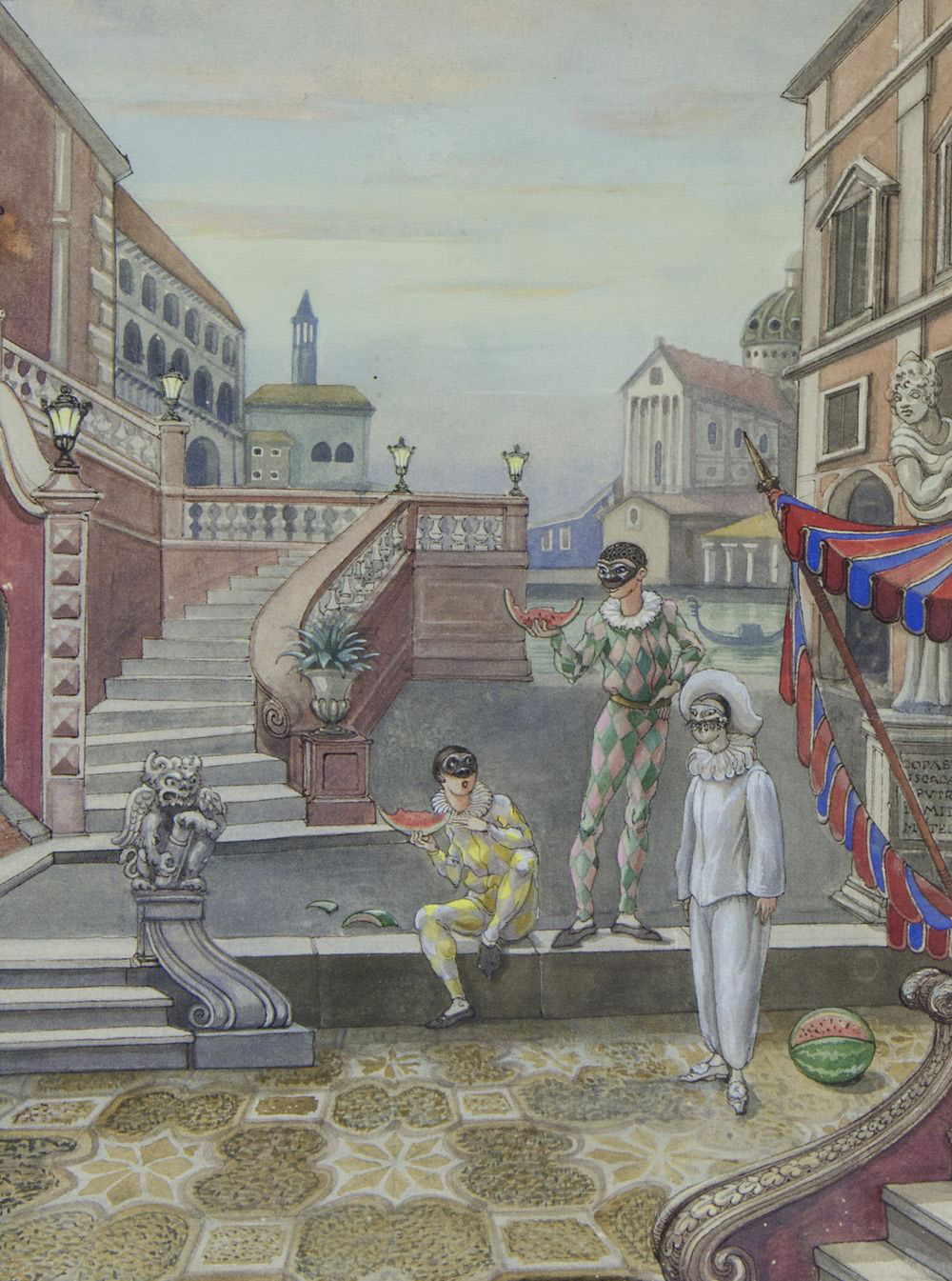 Lotto di 2 acquerelli incorniciati raffiguranti personaggi.