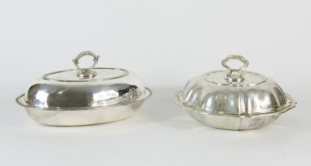 Lotto di 2 portavivande in argento con coperchio. Gr. Tot 2050.