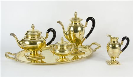 Servizio da caffè e thè in argento dorato composto da 5 pezzi, manici in...