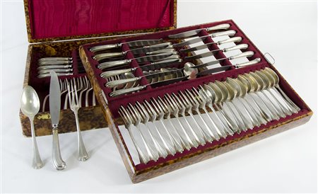 Servizio di posate per 12 persone in argento composto da 72 pezzi.
