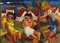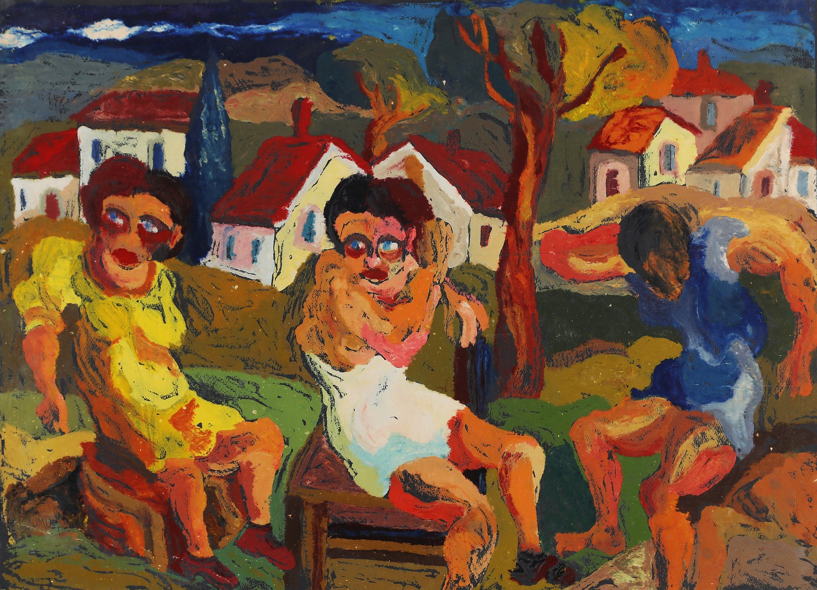 SERAFINI GIUSEPPE (1915 - 1987) Lot consisting of 3 works. Mixed media on cardboard. Cm 70,00 x 50,00. 1. Figure and birds, signing the center. At the back title, signature. 2. The brother, title, and signature back. 3. The wet, title, and signature back.