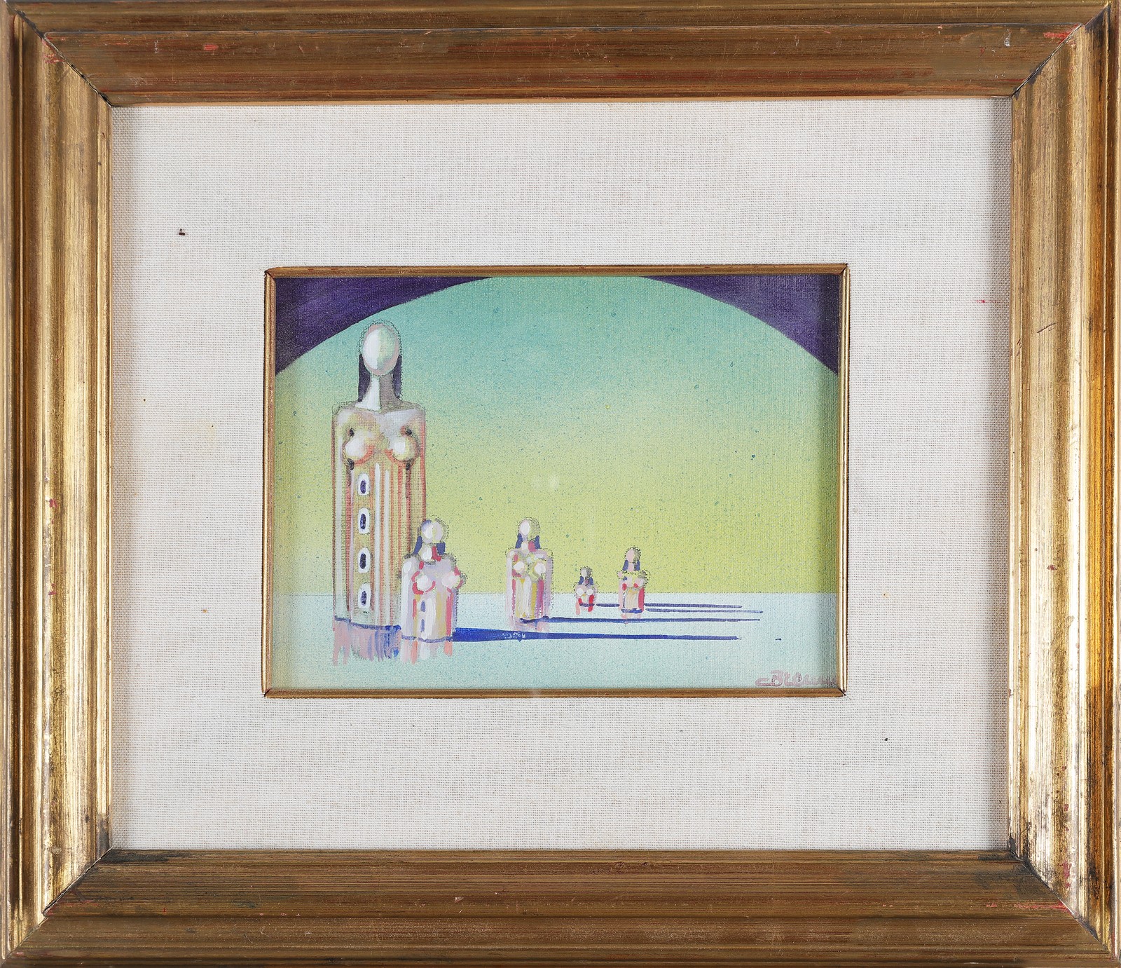 BRENNA CARLO (n. 1935) Untitled. Oil on hardboard. Cm 24,00 x 18,00. Signature lower right.. Cornice presente
