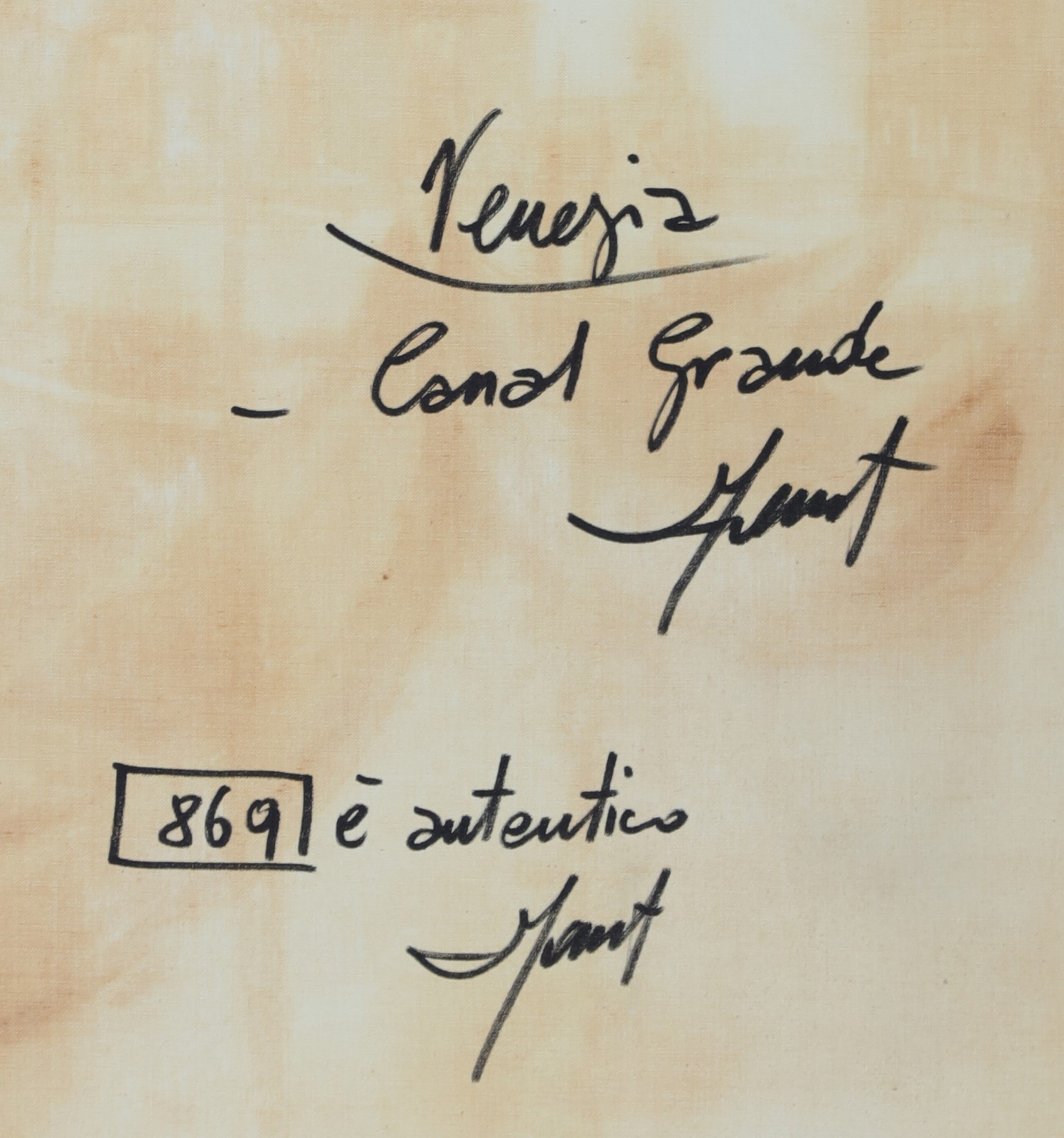MANTEGANI EUGENIO (1929 - 2005) Canal Grande. Olio su tela . Cm 50,00 x 70,00. Firma in basso a sinistra. Al retro titolo, luogo e firma per autentica. Autentica a cura della galleria Massante di Milano. Cornice presente