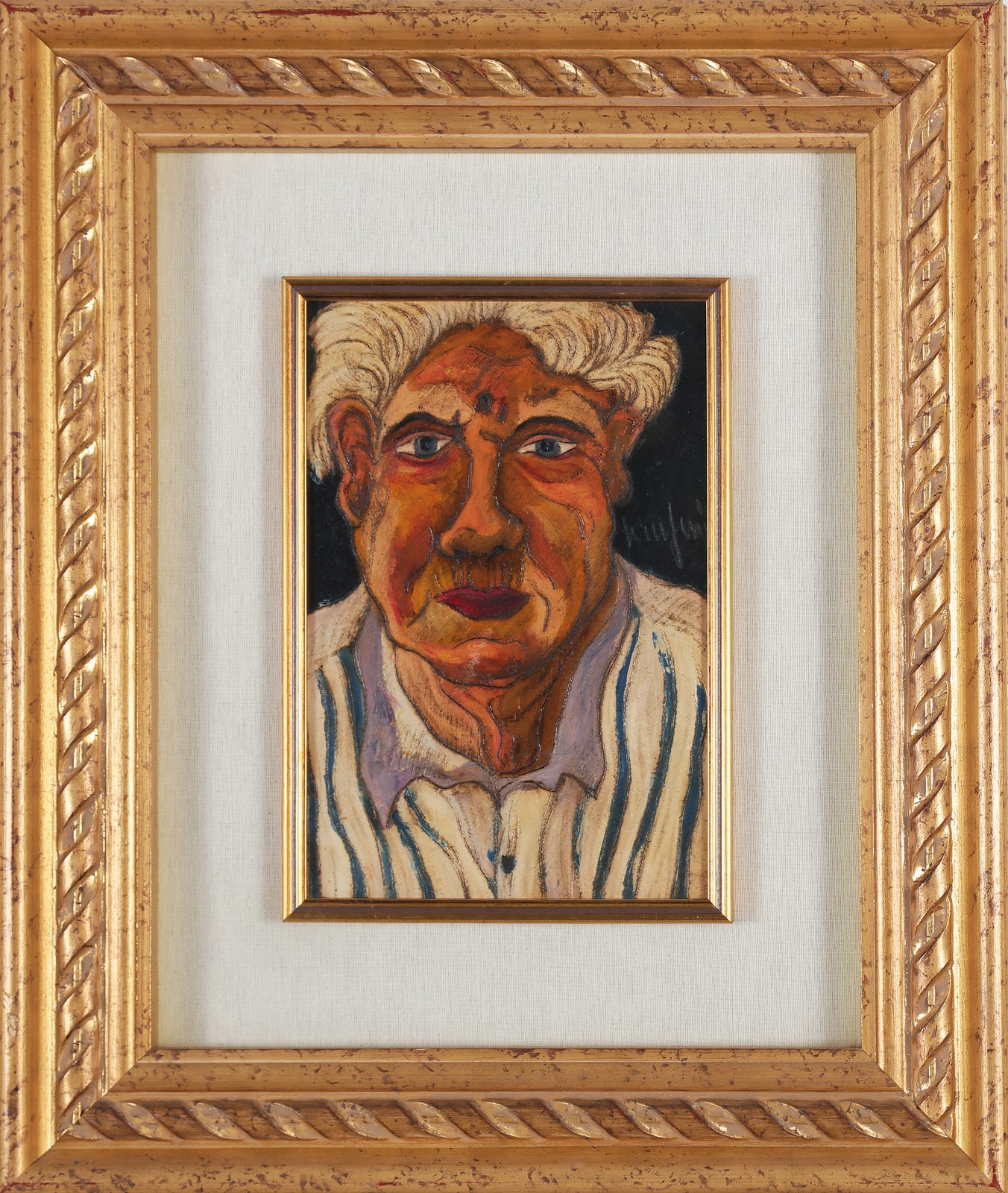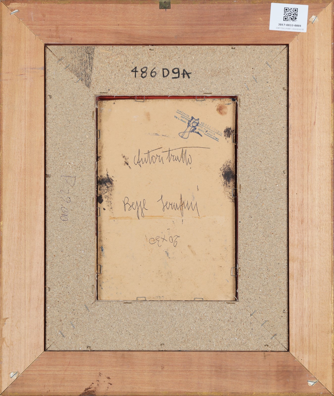 SERAFINI GIUSEPPE (1915 - 1987) Self-portrait. Oil on canvas . Cm 20,00 x 30,00. Signature right. At the back title, signature and Ballerini Gallery, Prato, stamp. Signature at the back. Artist's authenticity certificate on photography.. Cornice presente