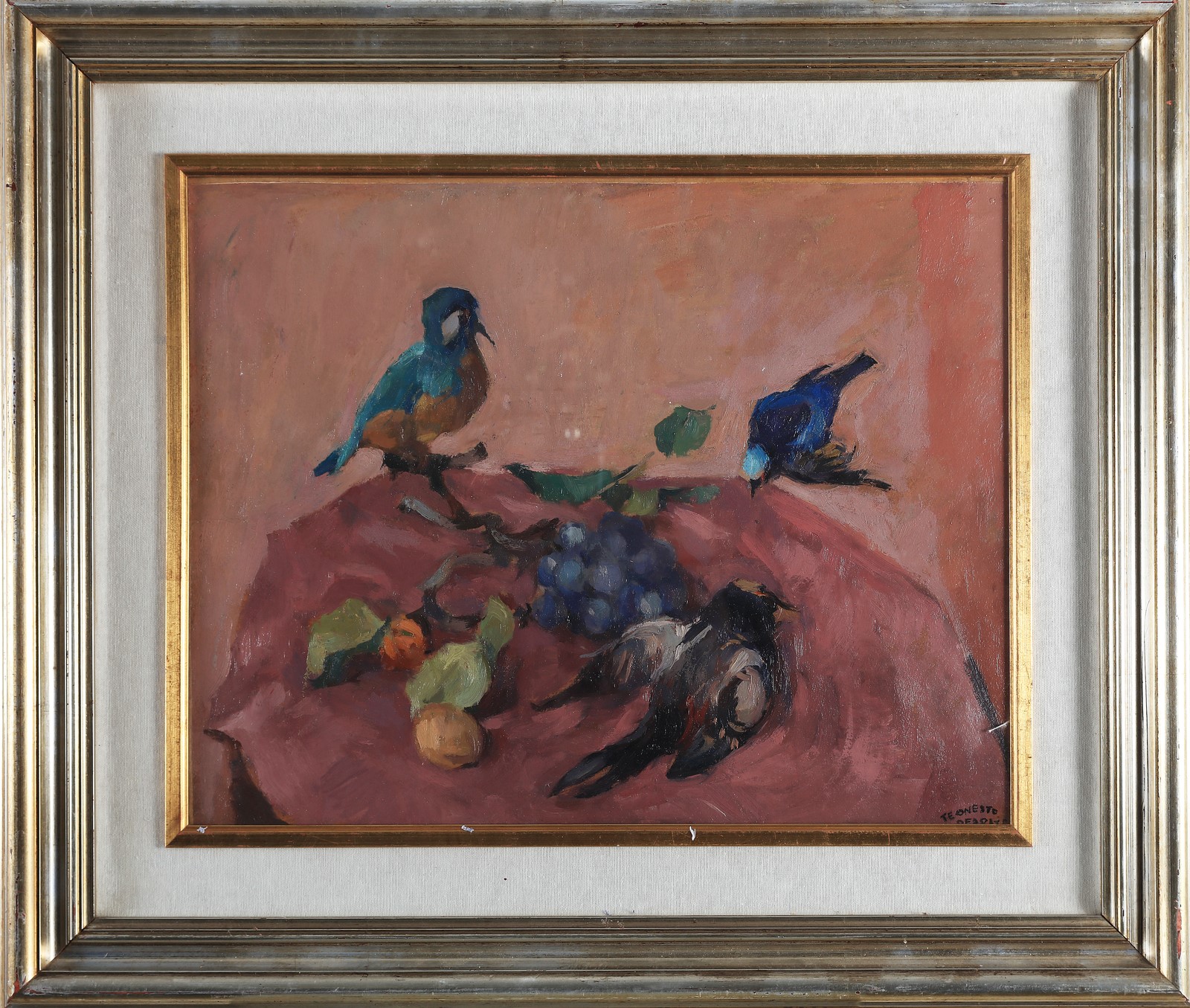 DEABATE TEONESTO (1898 - 1981) Still life. Oil on canvas . Cm 52,00 x 42,00. Signature lower right. Cornice presente