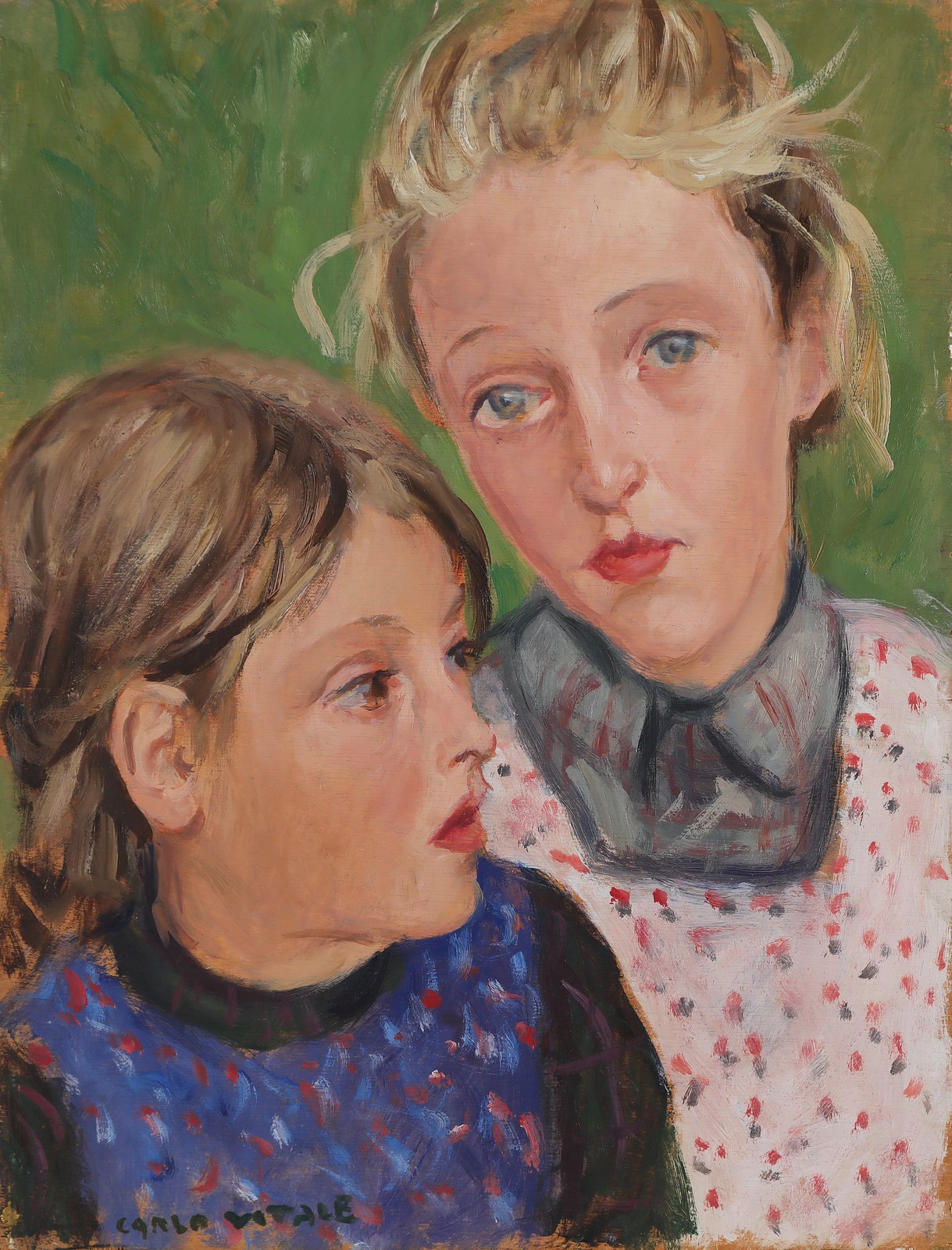 VITALE CARLO (1902 - 1996) Girls. 1933. Oil on board. Cm 30,00 x 40,00. Signature lower left.. Cornice presente