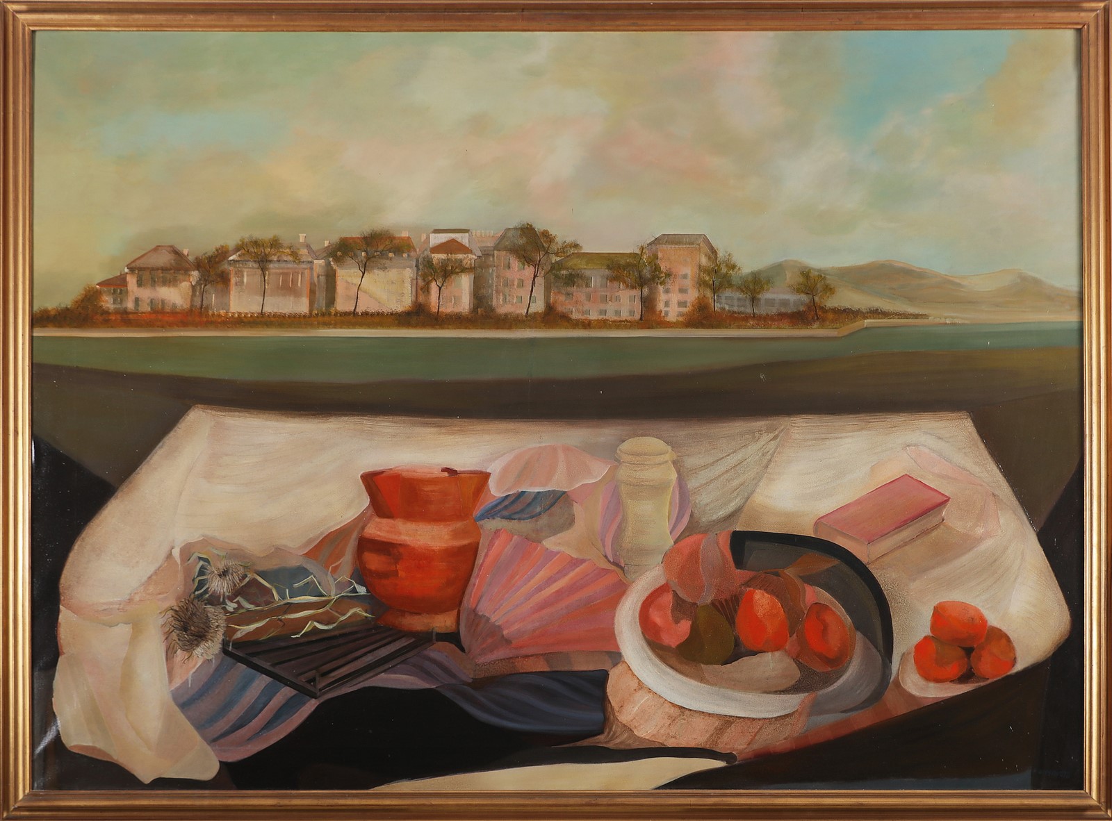 LONGINOTTI GIANNI (n. 1929) Riviera del Brenta (St. Peter, Island). Oil on canvas . Cm 165,00 x 110,00. The work shows little restoration in the central part.