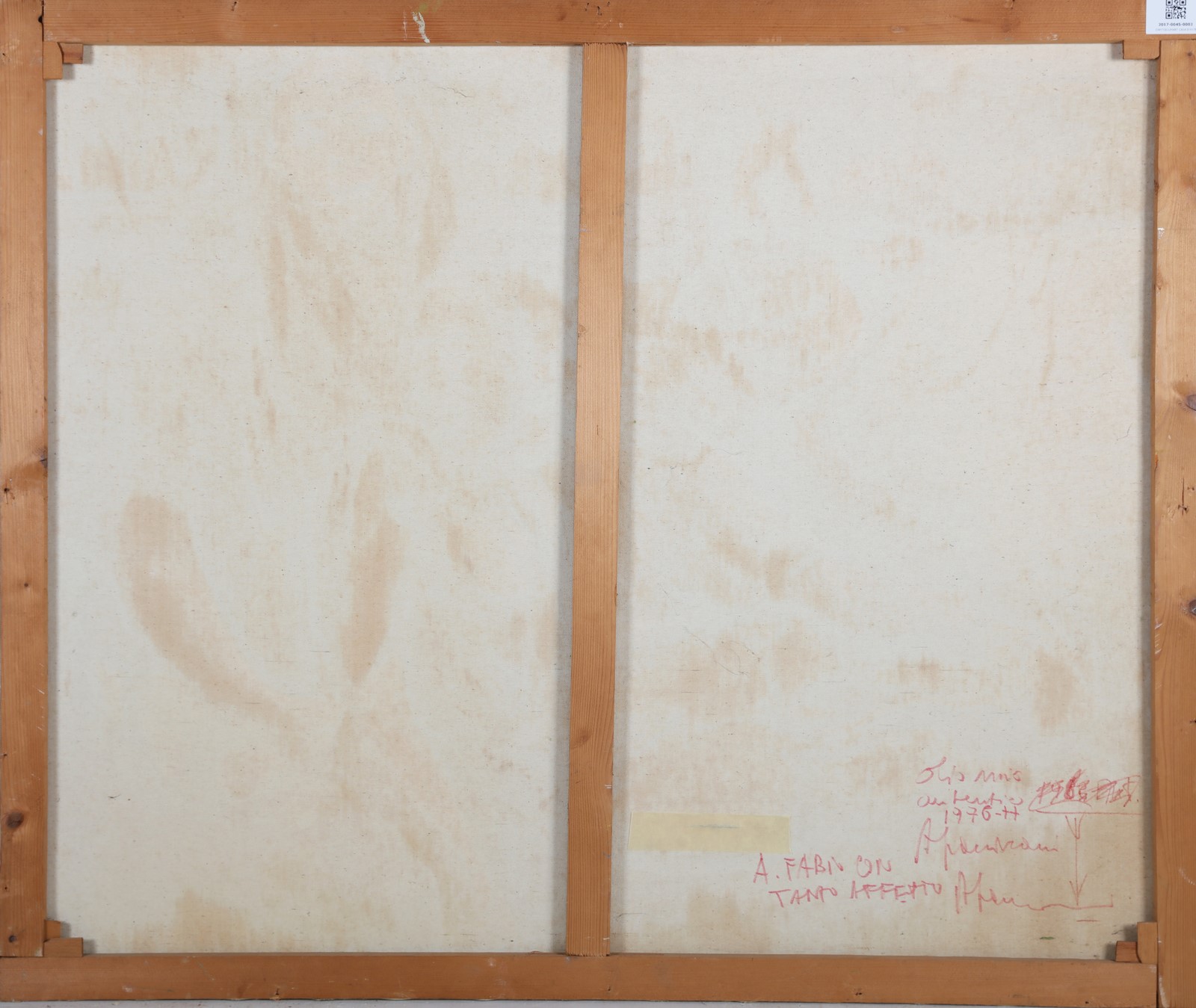 FACCINCANI ATHOS (n. 1951) Untitled. 1976. Oil on canvas . Cm 100,00 x 120,00. At the back signature, dedication and year. Artist's certificate on photo. Small cutting lower center.