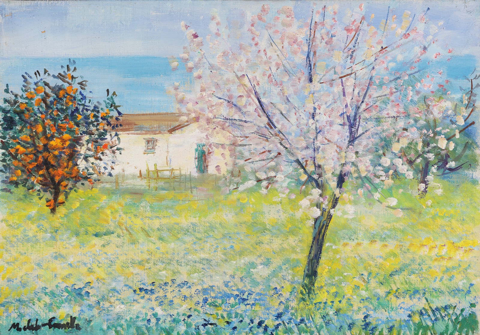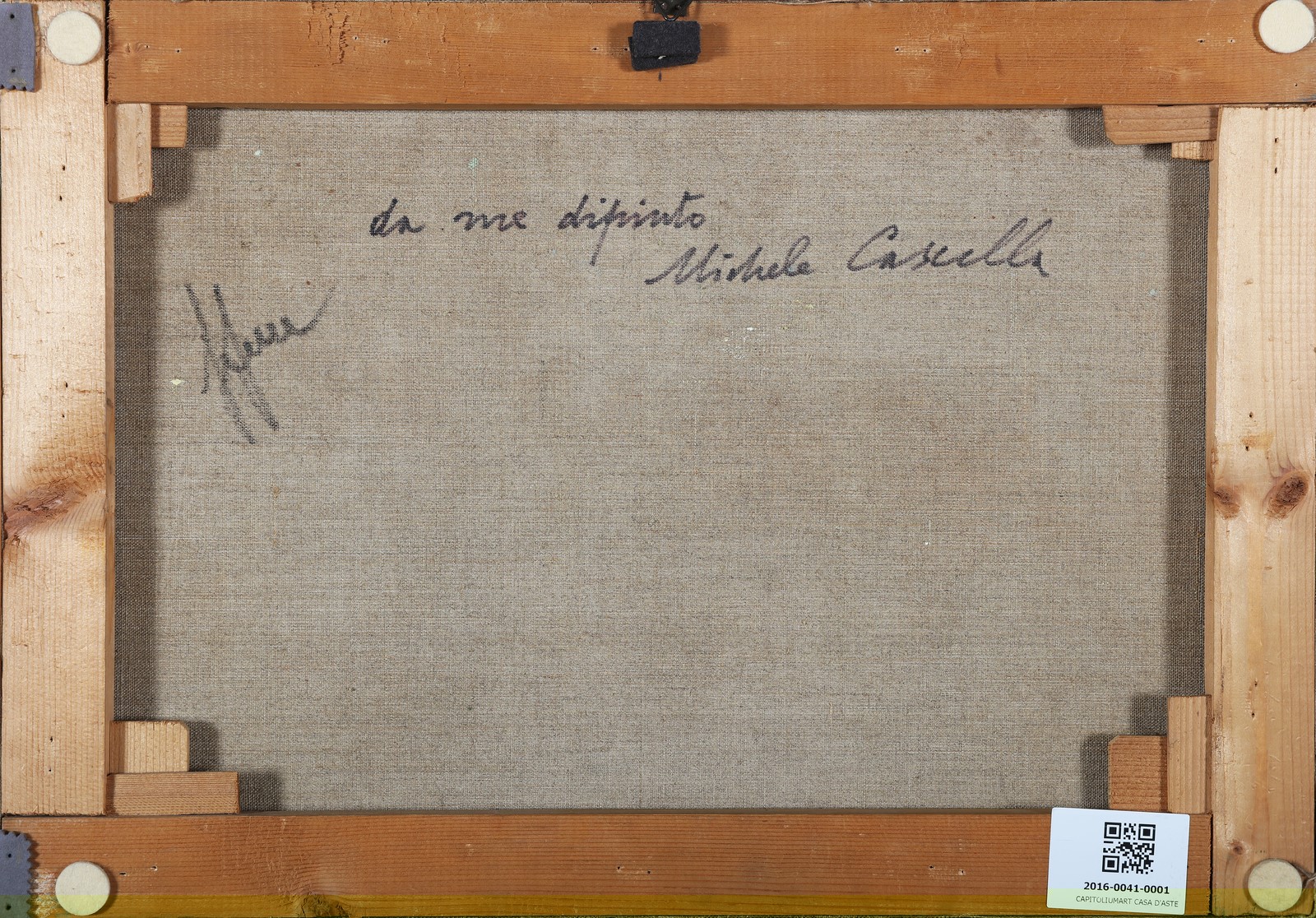 CASCELLA MICHELE (1892 - 1989) Abruzzese landscape. Oil on canvas . Cm 50,00 x 35,00. Signature lower left. Signature at the back. Late 70s. Archivio Generale delle Opere di Michele Cascella, Milano, certificate on photo.