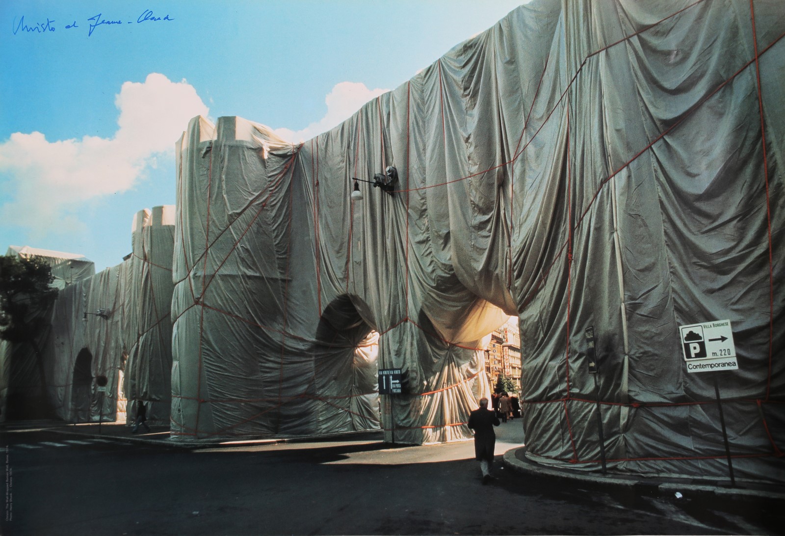 CHRISTO' (n. 1935) & JEANNE-CLAUDE (1935 - 2009) The wall wrapped roman wall. 1974. Graphics. Cm 90,00 x 64,00. Signature upper left. Edition at the back:102/300.