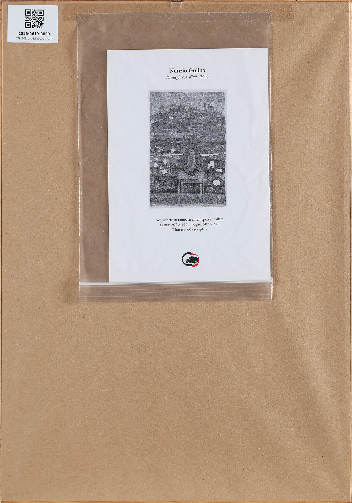 GIULINO NUNZIO (n. 1920) Natura morta con paesaggio. . 2000. Acquaforte su...
