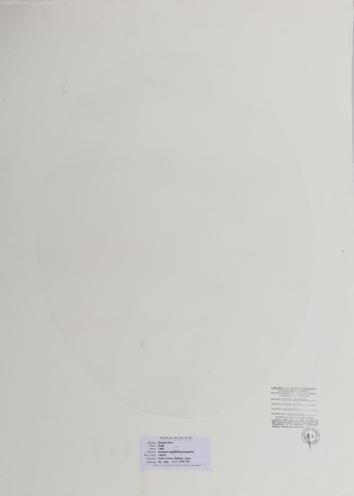 DORAZIO PIERO (1927 - 2005) Ovale. 1987. Acquaforte. Cm 58,00 x 76,00. 109/120. Tiratura firma e data in basso a matita. Timbro a secco - Grafica D'Arte Lombardi, Roma - in basso a sinistra. Al retro timbro - Grafica D'Arte Lombardi, Roma.