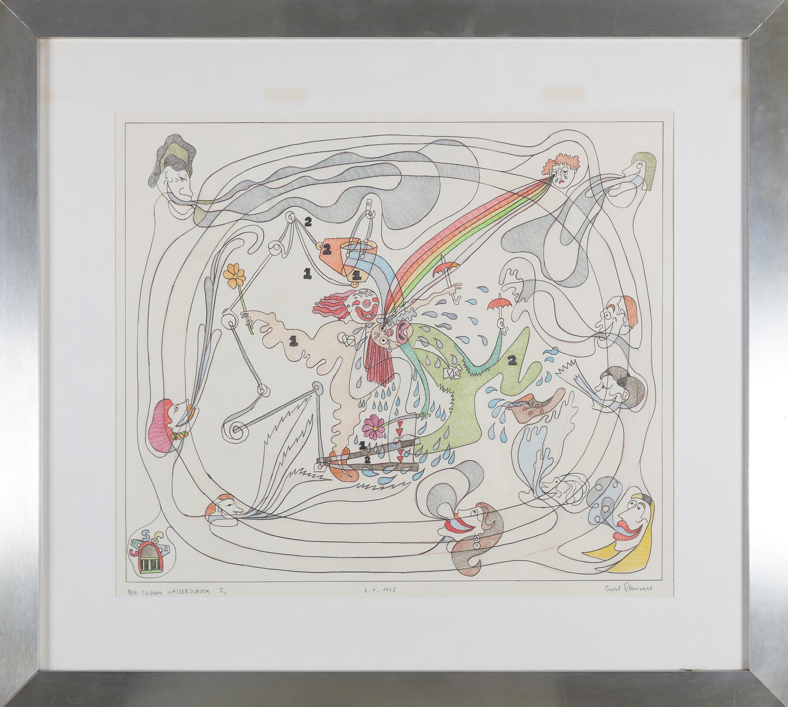 STENVERT CURT (1920 - 1992) Der clown wasserschochk, 5. 1975. Lithograph. . Title, signature and year lower in pencil. At the back: Art Gallery Narciso, Turin, label.. Cornice presente