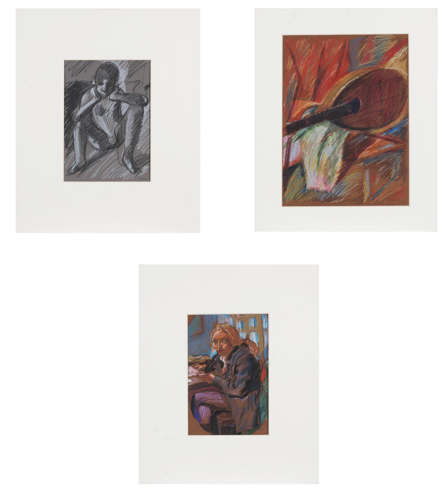 TINDARO CALIA (n. 1956) Lotto composto da 3 litografie. . Litografie. Cm 32,50 x 39,00. 1. Figura, firma in basso a destra. Al retro firma e anno, 1996.