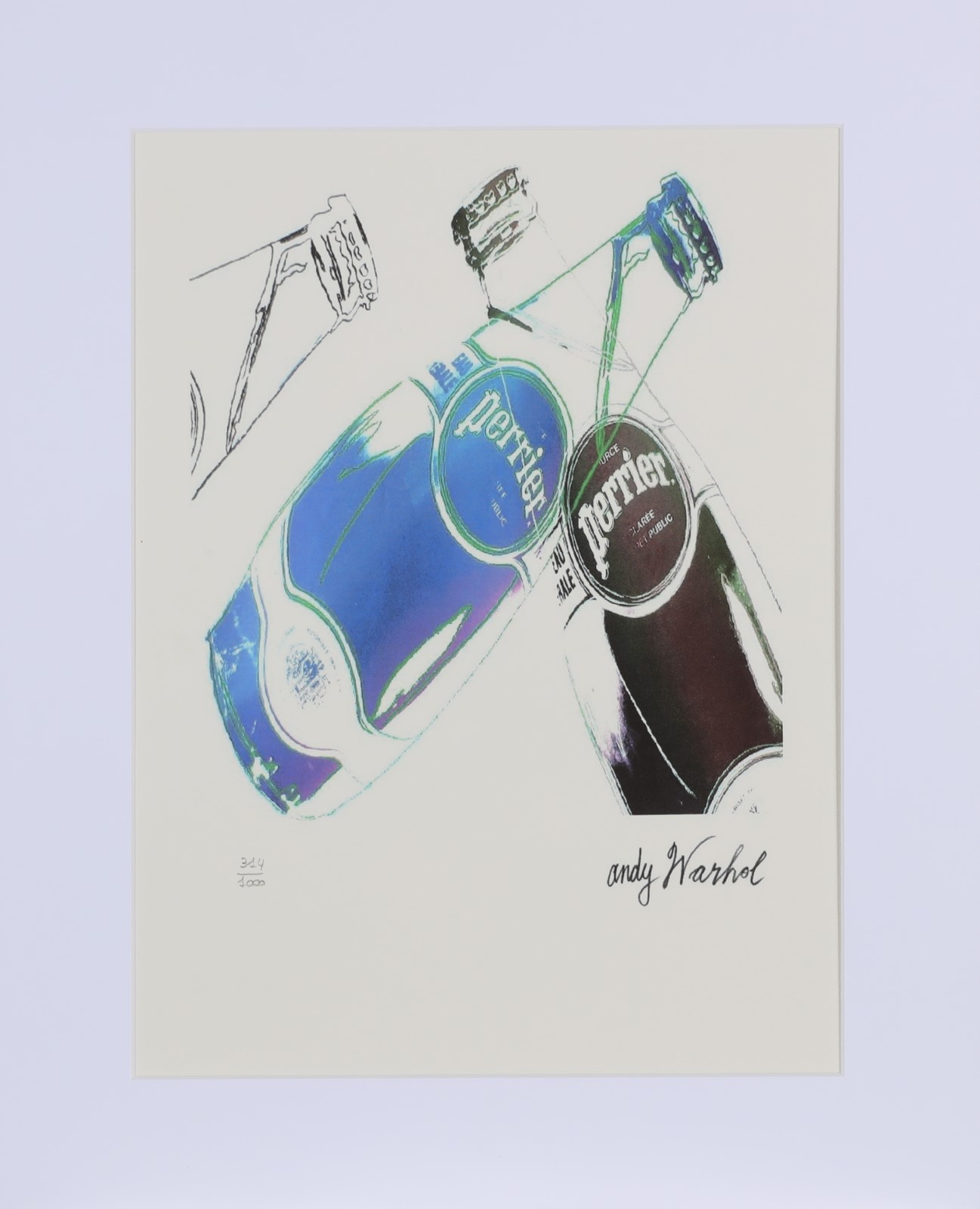 WARHOL ANDY (1928 - 1987) Lotto composto da 4 fotolitografie. . Fotolitografia. Cm 30,00 x 40,00. 1. Perrier, 314/1000, tiratura in basso a sinistra a matita, firma a stampa.