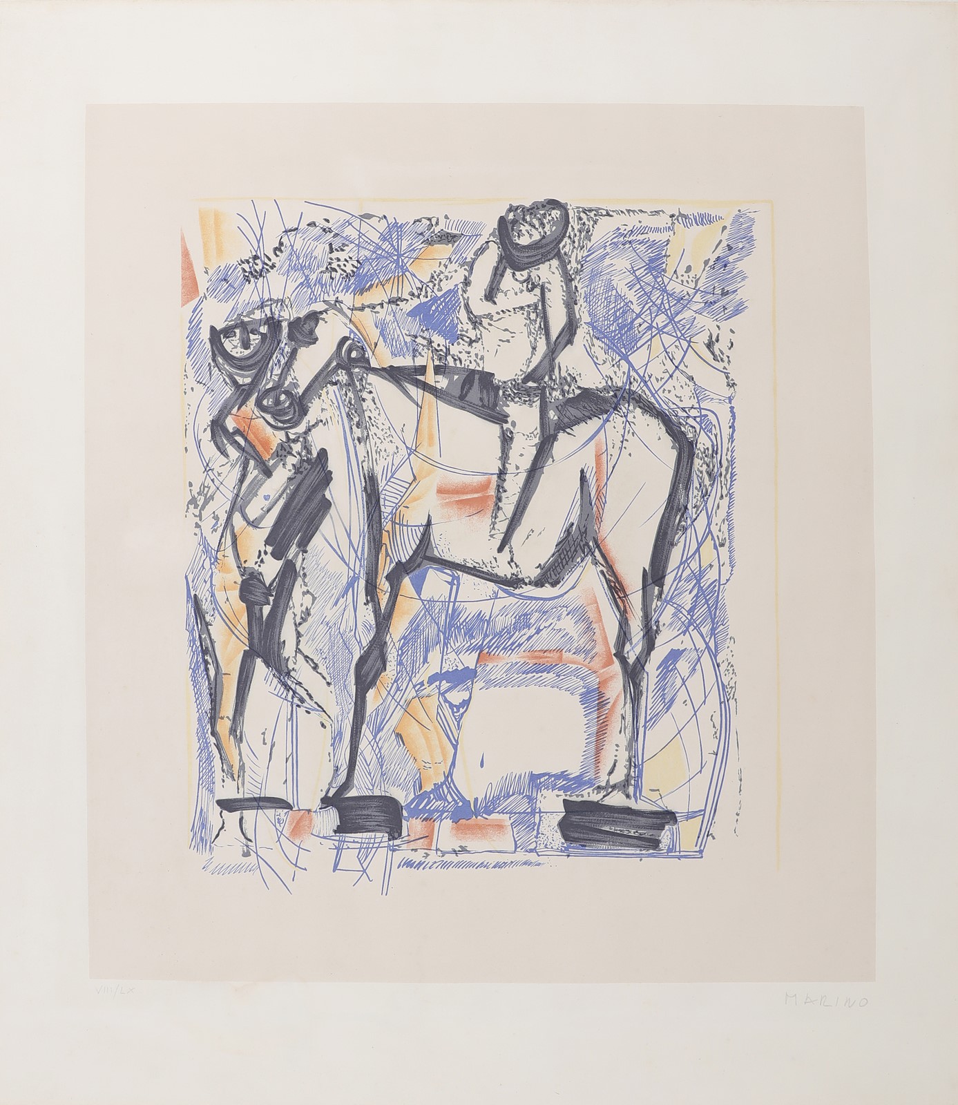 MARINI MARINO (1901 - 1980) Horseman. Lithograph. Cm 80,00 x 70,00. VIII / LX. Signature and edition lower in pencil.. Cornice presente