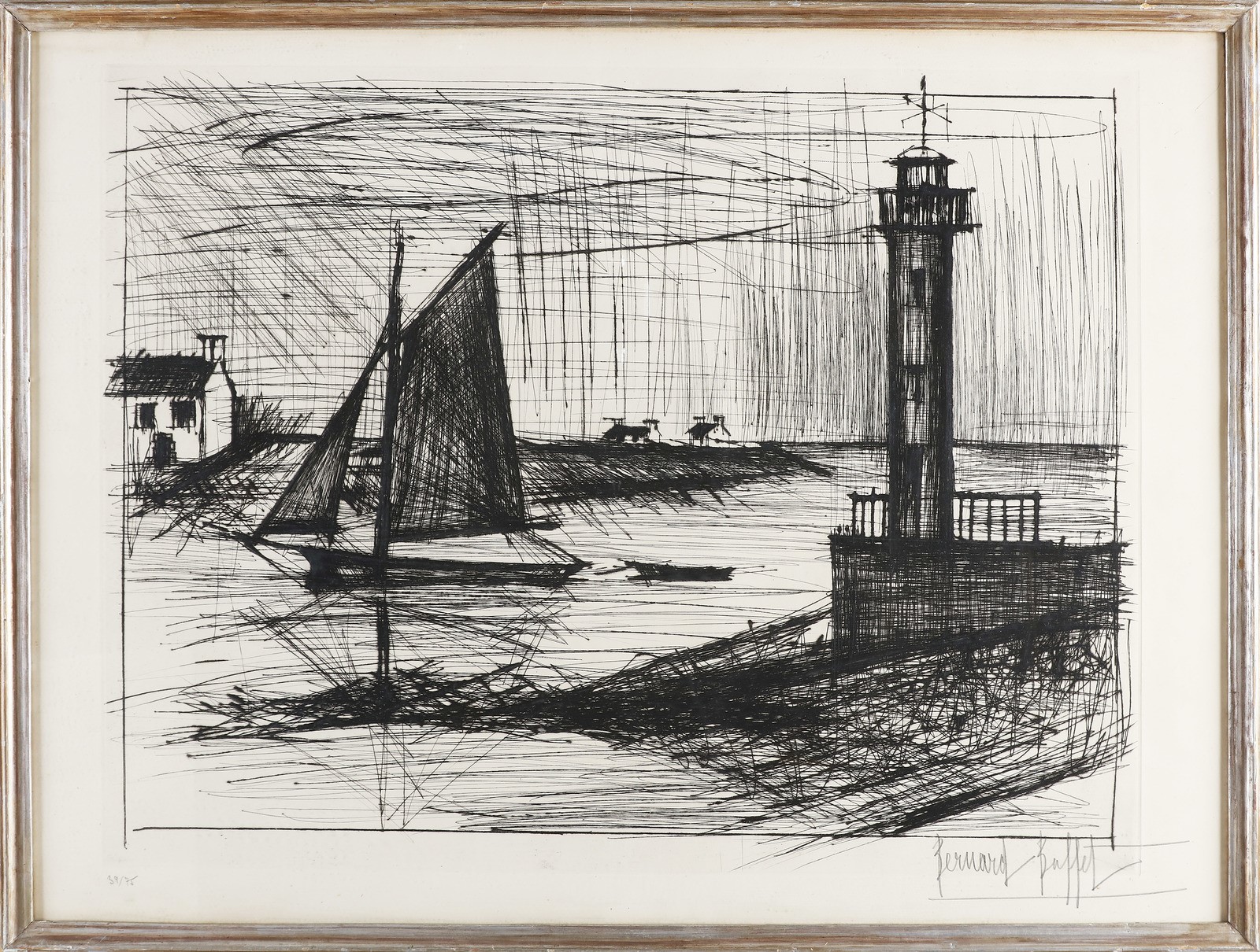 BUFFET BERNARD (1928 - 1999) L'embouchure de L'Odet. 1972. Acquaforte. Cm 75,00 x 55,00. 39/75. Firma e tiratura in basso a matita. Cornice presente