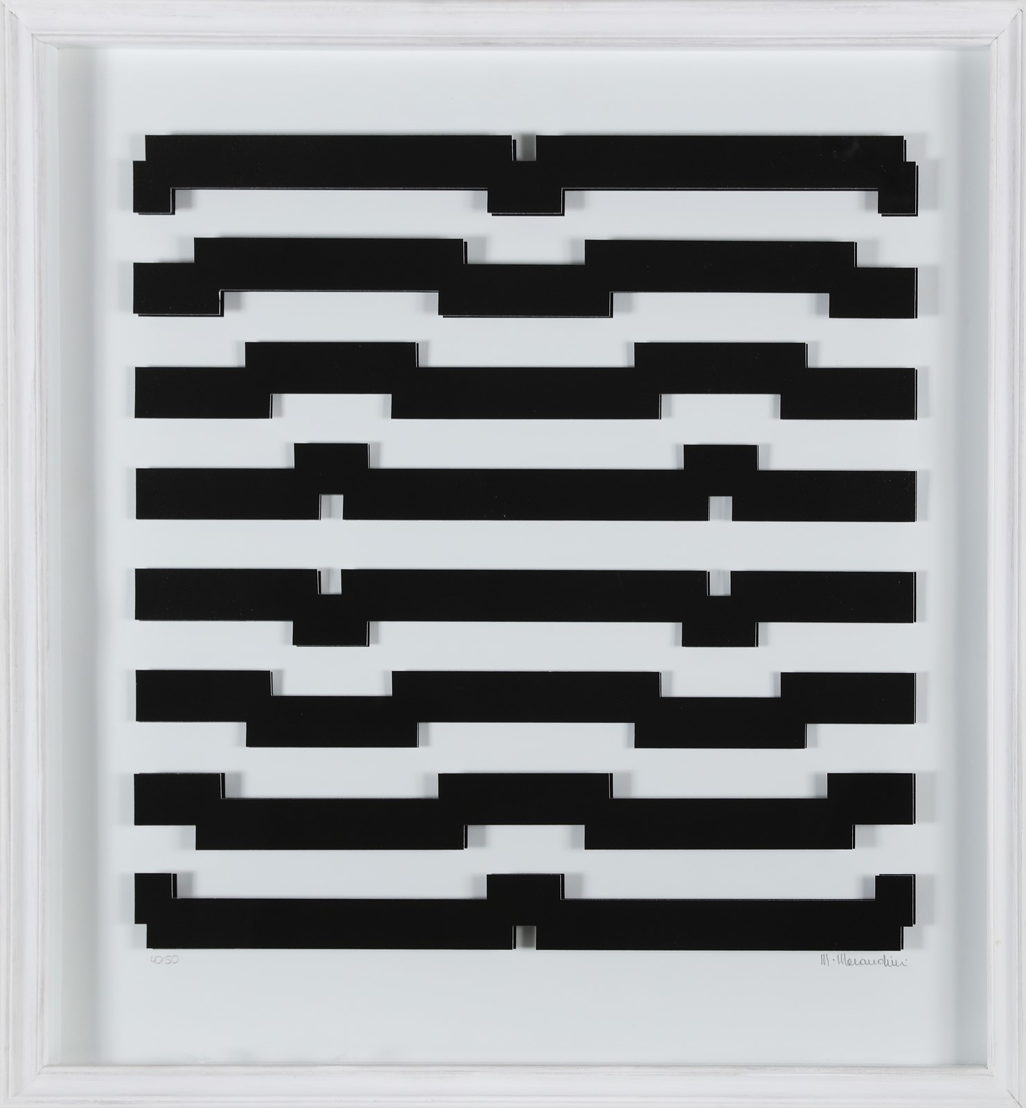 MORANDINI MARCELLO (n. 1940) Composizione. . Multiplo tridimensionale. Cm 61,00 x 63,00. 40/50. Firma e tiratura in basso a matita. Al retro cartiglio descrittivo a cura di Galerie F-GmbH, Kranenburg. . Cornice presente