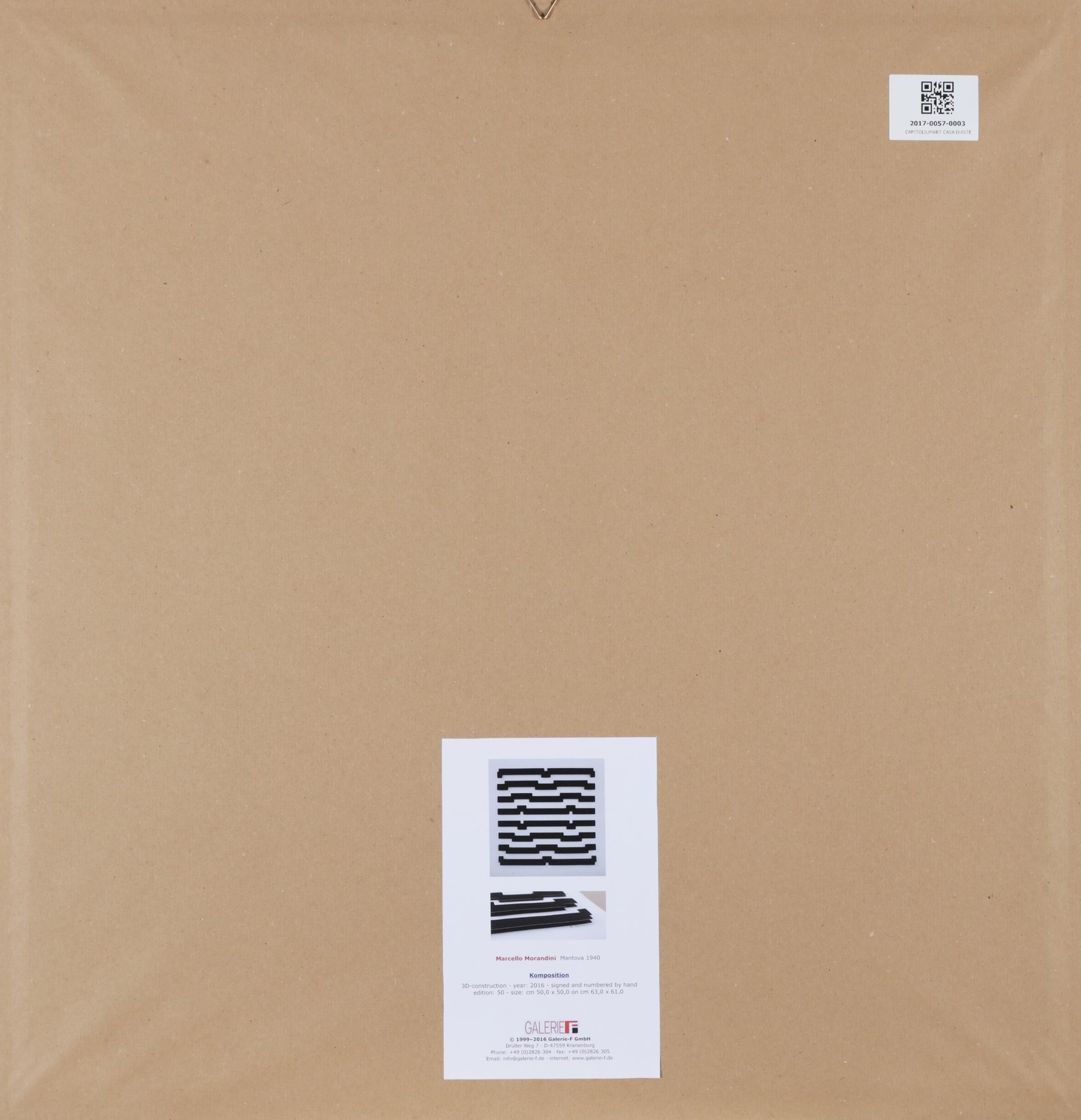 MORANDINI MARCELLO (n. 1940) Composition. Tridimentional multiple. Cm 61,00 x 63,00. 40/50. At the back: signature, edition and Galerie-F GmbH, Kranenburg label.. Cornice presente