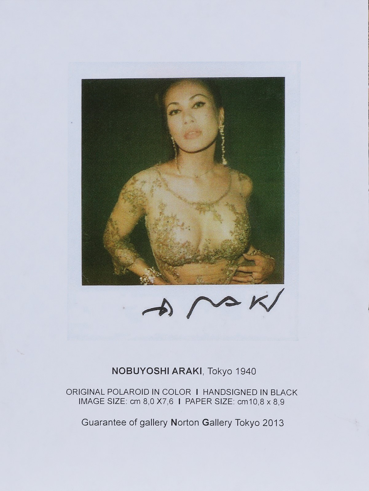 ARAKI NOBUYOSHI (n. 1940) Untitled. 2013. Polaroid. Cm 8,90 x 10,80. Signed at the bottom. Norton Gallery, Tokio, authenticity certificate on photo.. Cornice presente