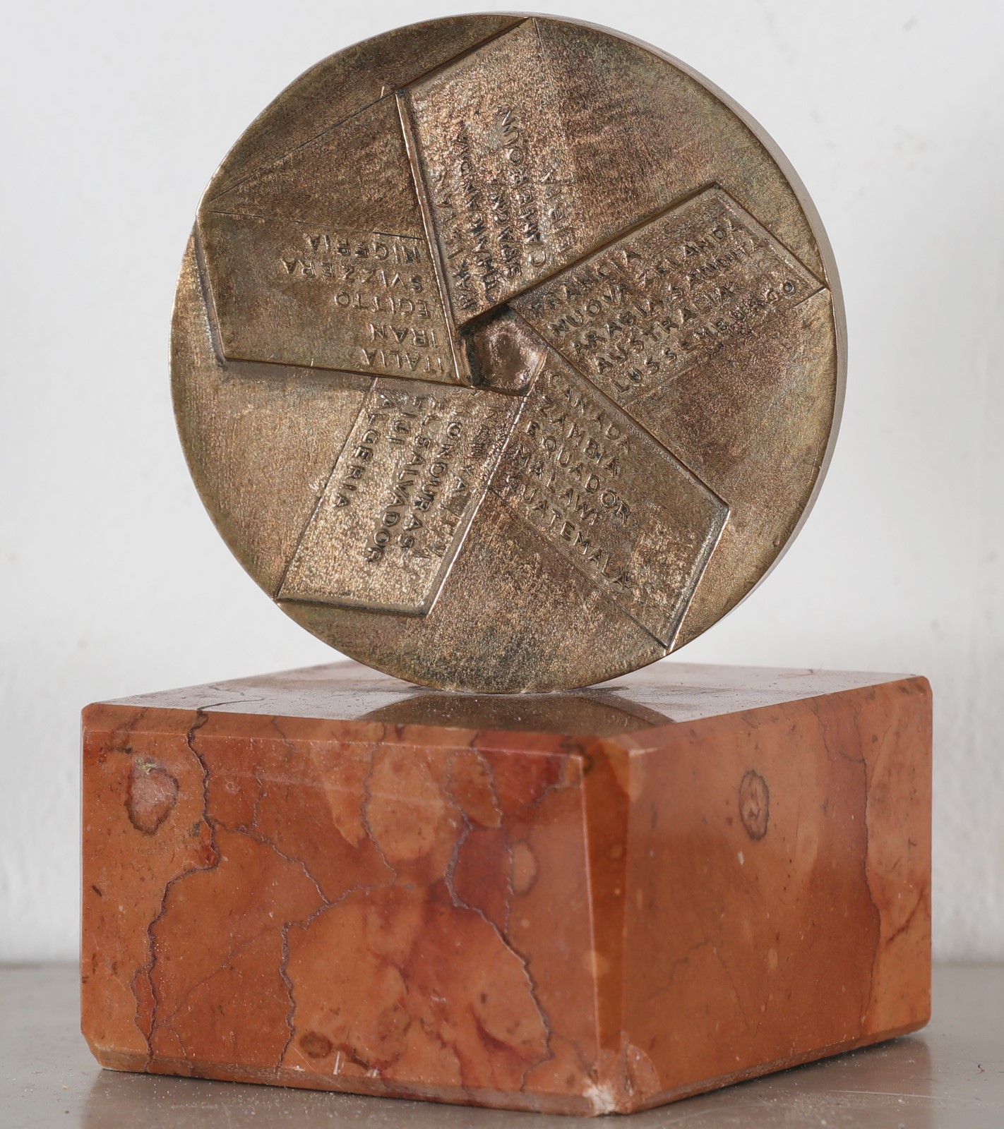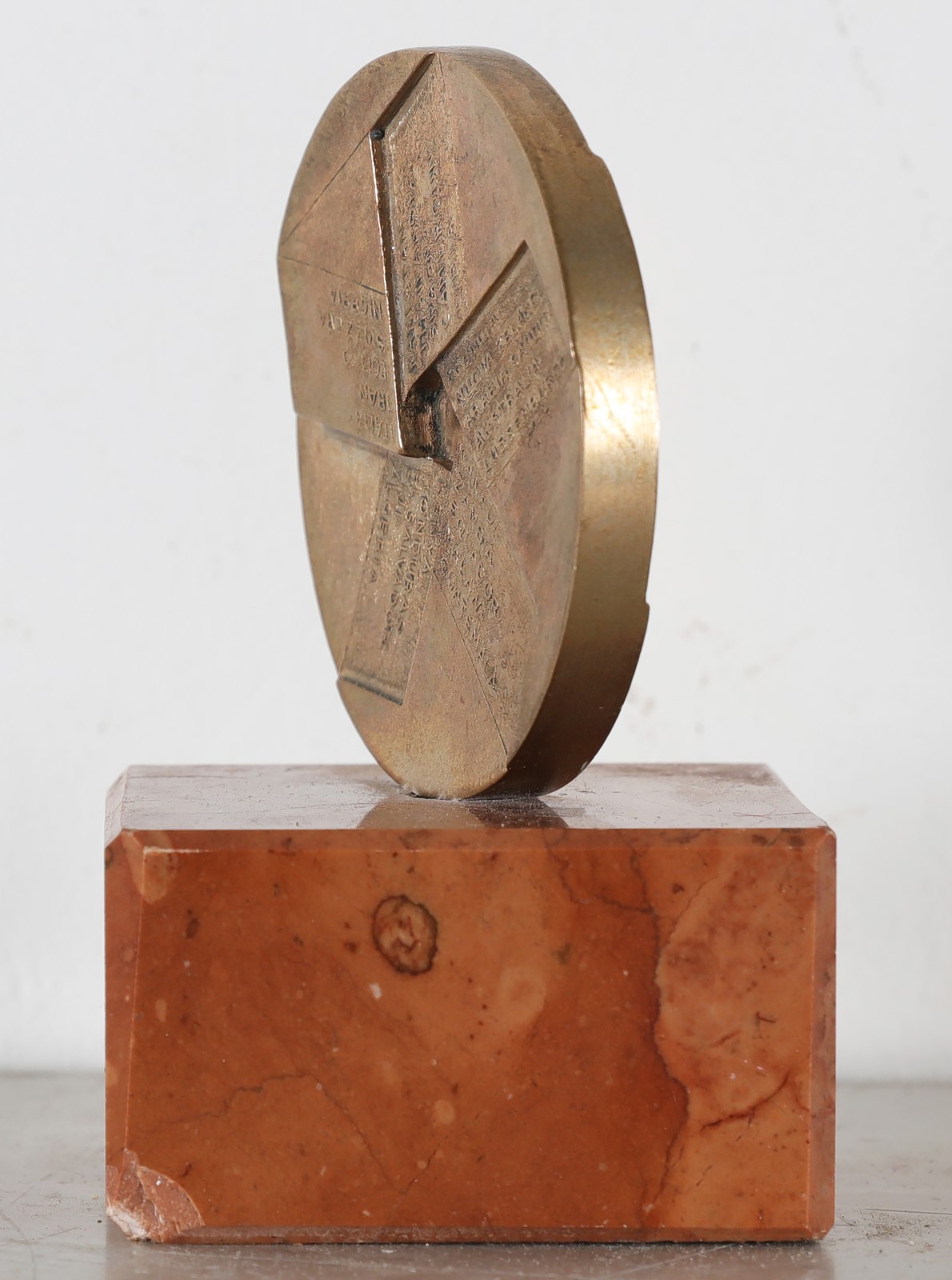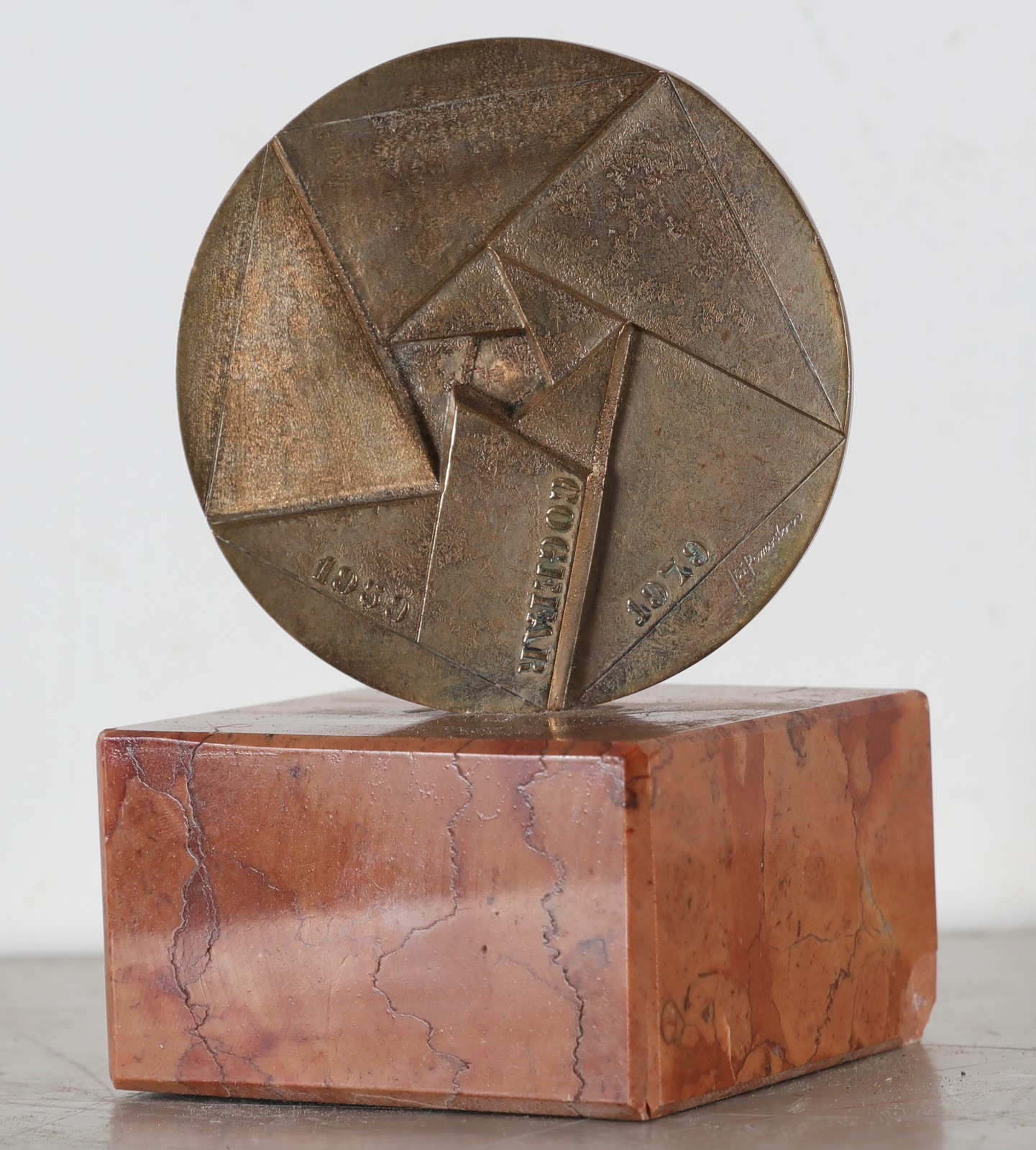 POMODORO GIO' (1930 - 2002) Cogefar. 1979. Bronze. Cm 8,00 x 8,00. With marble base: 13x7,5 cm. Signature, title and year engraved at the bottom. Pubblications: R. Sanesi and M. Johnson, Gio Pomodoro and Johnson, exhibition catalog at the Archaeological Museum in Milan, 1992, pp. 12 and 13.