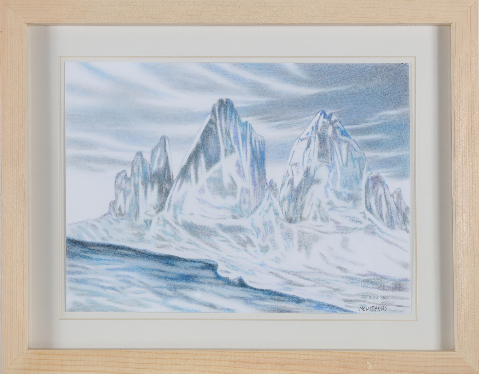 MONTESANO GIAN MARCO (n. 1949) Mountain. 1995. Pastel on paper. Cm 33,00 x 24,00. Signed lower right. Artist's authenticity certificate on photo.. Cornice presente
