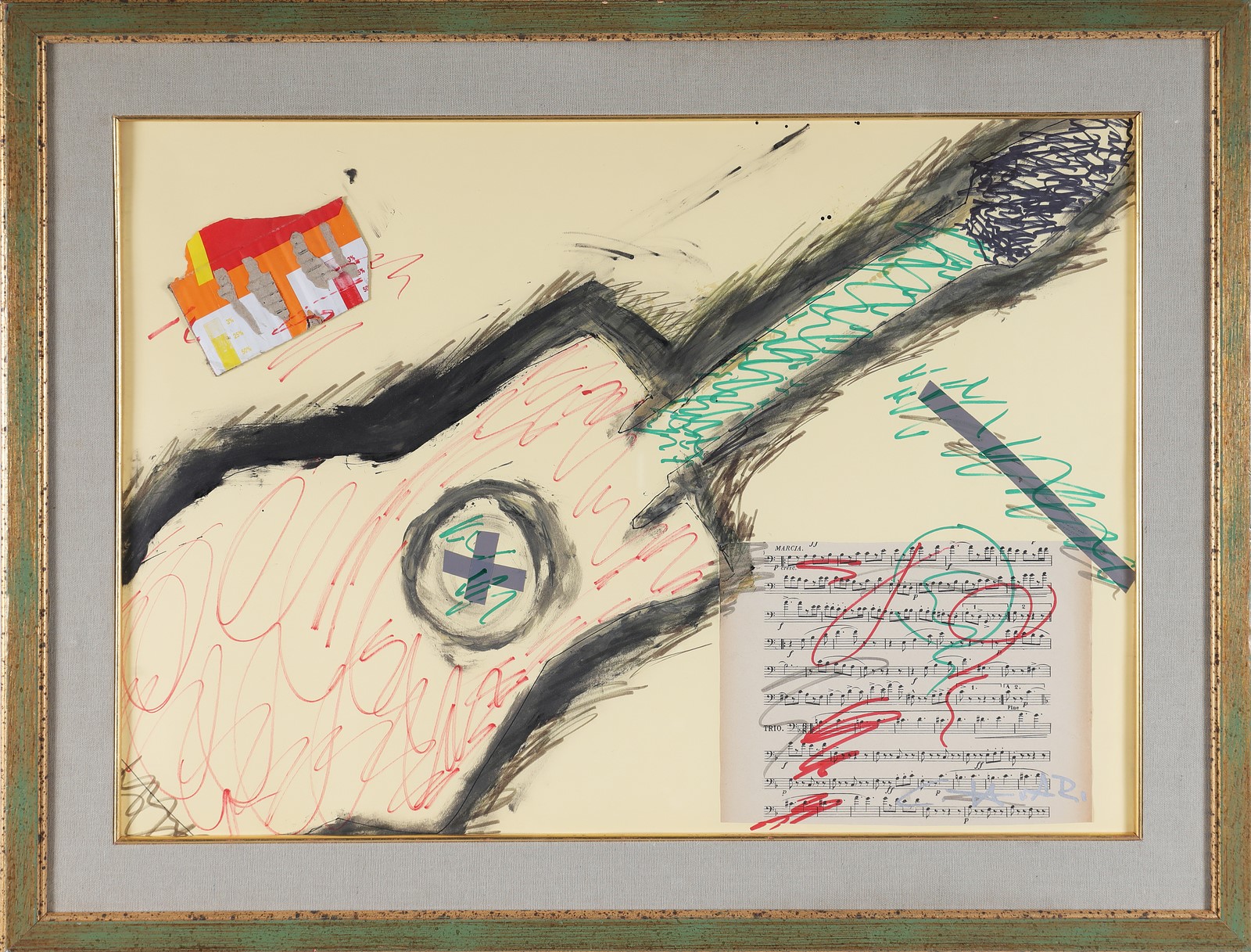 CHIARI GIUSEPPE (1926 - 2007) Chitarra. . Tecnica mista e collage su cartone....