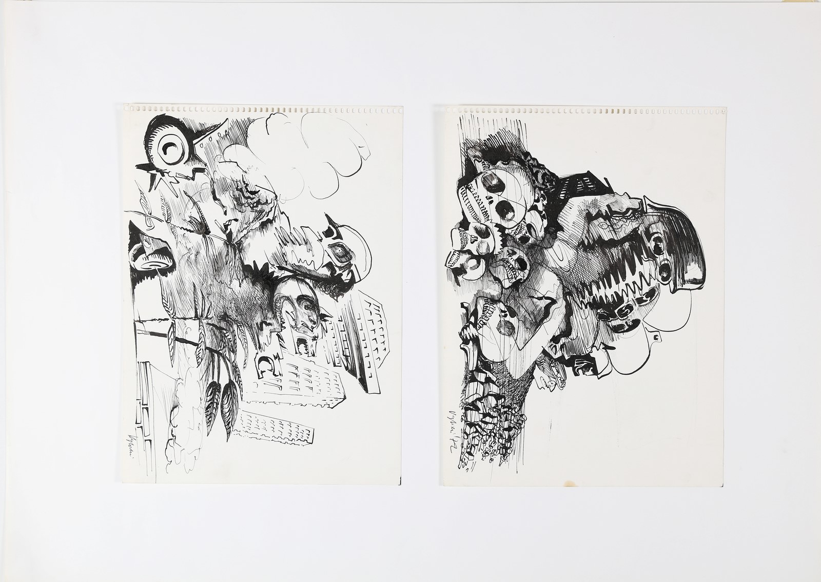 VAGLIERI TINO (1929 - 2000) Lot composed by 2 drawings. 1972. Mixed media on paper. Cm 50,00 x 70,00. Both drawings are signed at the bottom right. sheet size 22x32 cm.