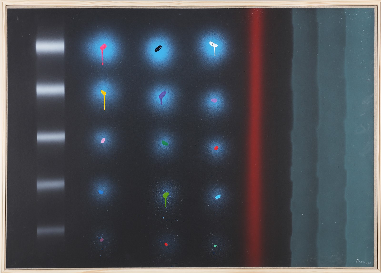 FINZI ENNIO (n. 1931) Untitled. 1998. Mixed media on canvas paper. Cm 70,00 x 100,00. Signature and year on the bottom right. At the back De Marco Roberto & Snc, Venice, stamp. Artist's authenticity certificate on photo.. Cornice presente