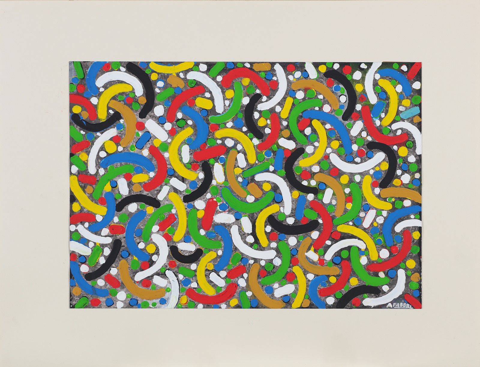 FABBRI AGENORE (1911 - 1998) Public garden. Mixed media on paper. Cm 31,00 x 51,00. Signed upper right. Caterina Barbieri Fabbri authenticity certificate on photo. Cornice presente
