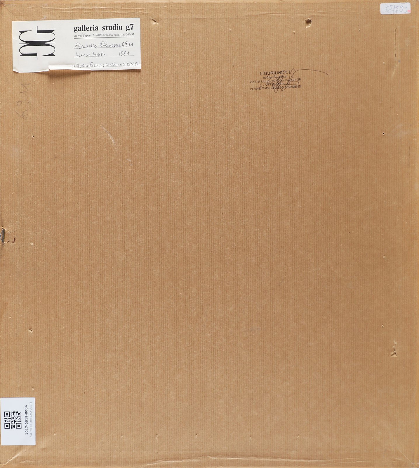 OLIVIERI CLAUDIO (n. 1934) Untitled. 2013. Mixed media on paper. Cm 16,00 x 23,50. At the back: G7 Studio Gallery, Bologna, label and Liguriundici, Pavia, stamp. Artist's authenticity certificate on photo.. Cornice presente