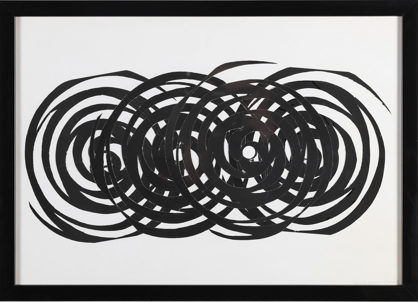 CAMPESAN SARA (n. 1924) Incrocio di spirali. . 2002. Tecnica mista e collage su carta. Cm 50,00 x 35,00. Firma e anno a matita in basso a destra. Autentica dell'artista su fotografia. . Cornice presente