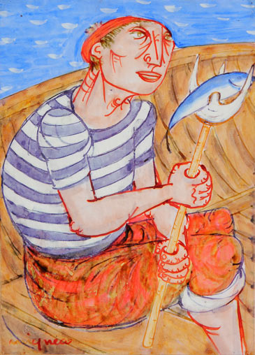 Giuseppe MIGNECO Messina 1908 - Milano 1997 Senza titolo china colorata su carta intelata colour ink on paper laid down on canavas cm 30×21 Autentica dell’artista su fotografia Certificate issued by the artist Firma ‘Migneco’ (in basso a sinistra) Signed ‘Migneco’ (lower left)