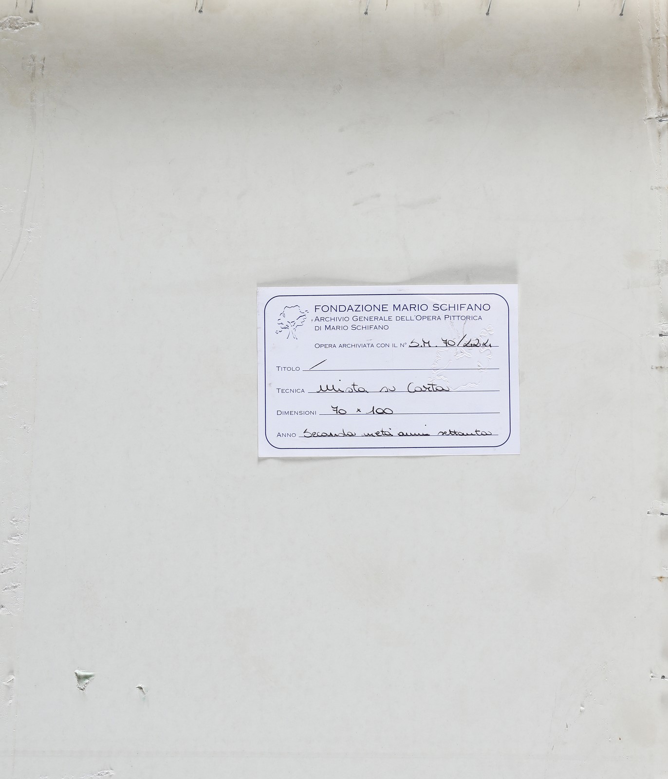 SCHIFANO MARIO (1934 - 1998) Untitled. Mixed media on paper. Cm 100,00 x 70,00. Second half of the 70s. Signature lower right. Mario Schifano Foundation, Rome, authenticity certificate on photo.