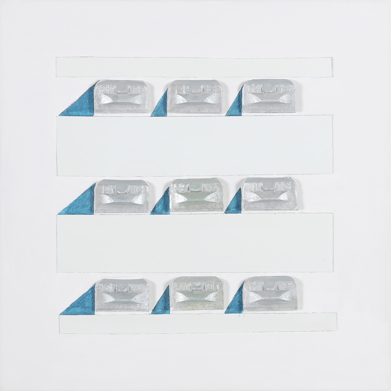 ATELIER D'ART Lot consists of two works. Mixed media on canvas board. . 1. Horizon, descriptive title block to the back and stamp curated by Atelier d'Art, Nice. Authentic curated by Atelier d'Art. 2. East, 40x40 cm, the back descriptive title block and stamp curated by Atelier d'Art, Nice. Authentic curated by Atelier d'Art.. Cornice presente