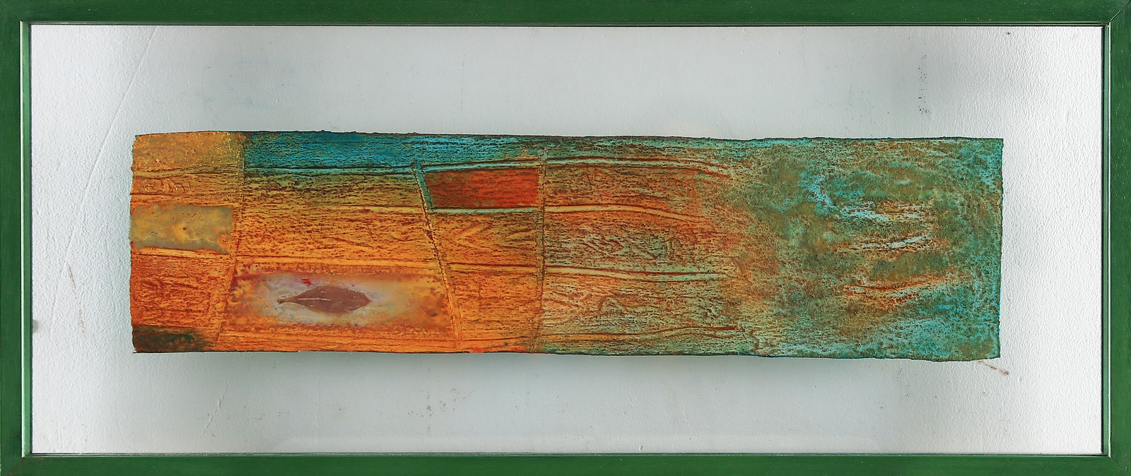 NUCARA RENZO (n. 1955) Natura ritrovata. . 2003. Pigmenti su tavola. Cm 13,00 x 51,50. Al retro firma, titolo e anno.Timbro a cura della Cracking Art. Autentica dell'artista su fotografia. . Cornice presente